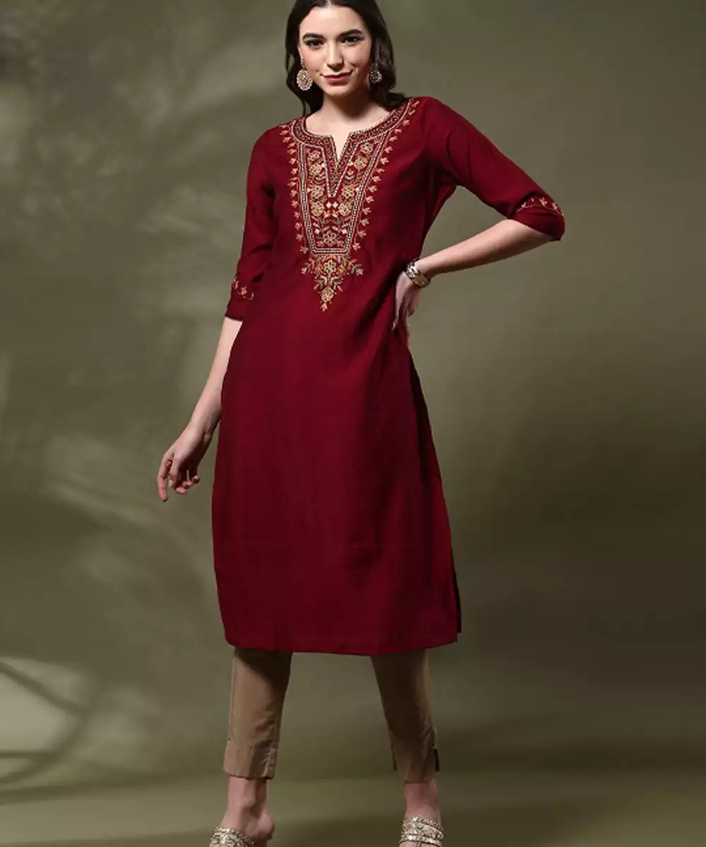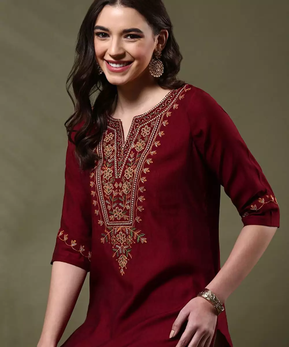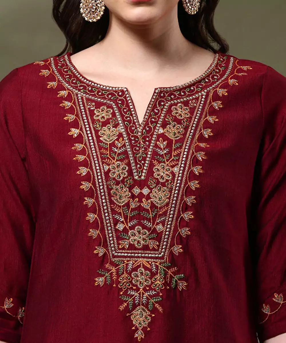 Floral Embroidered Flared Sleeves Thread Work Kurta