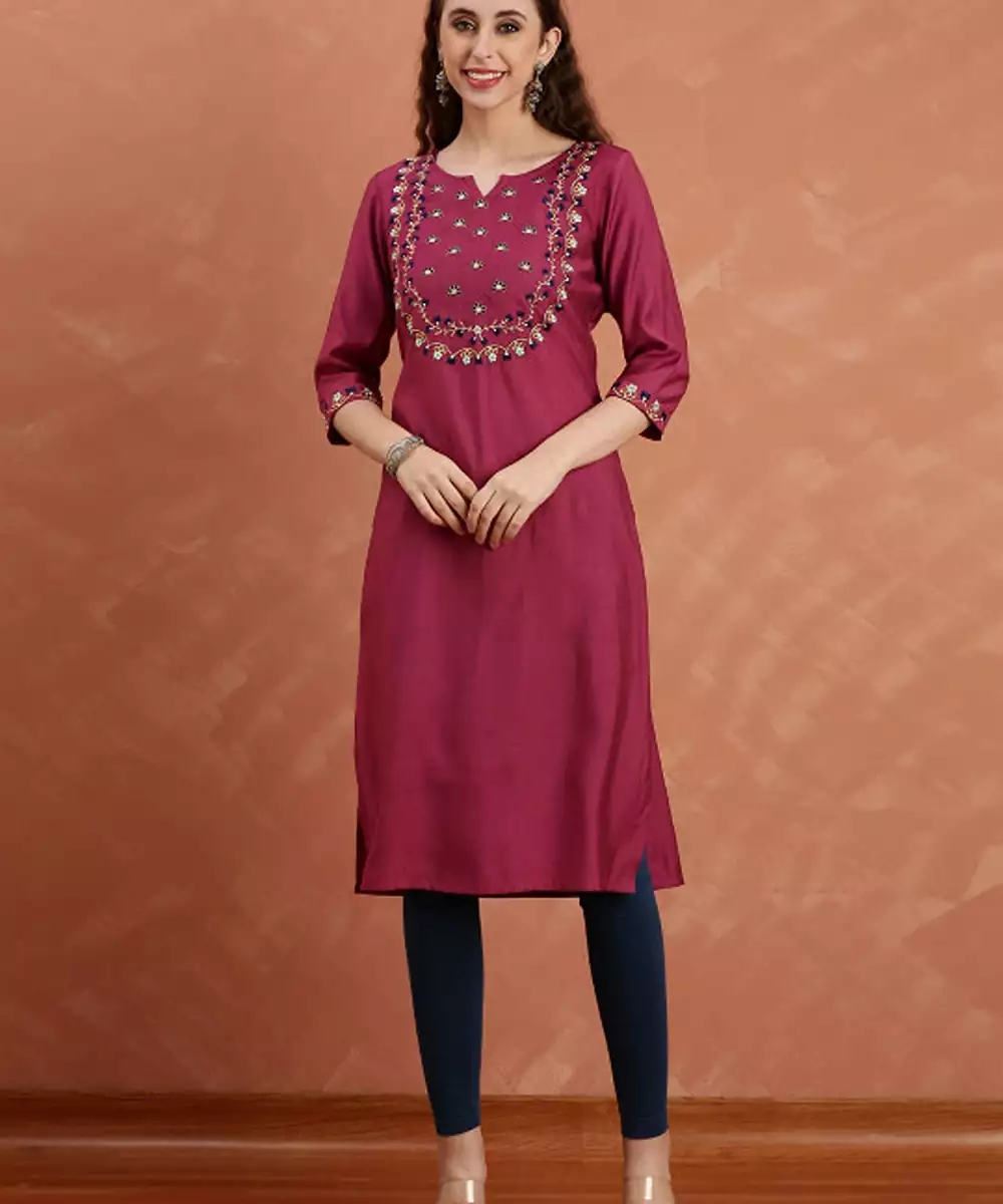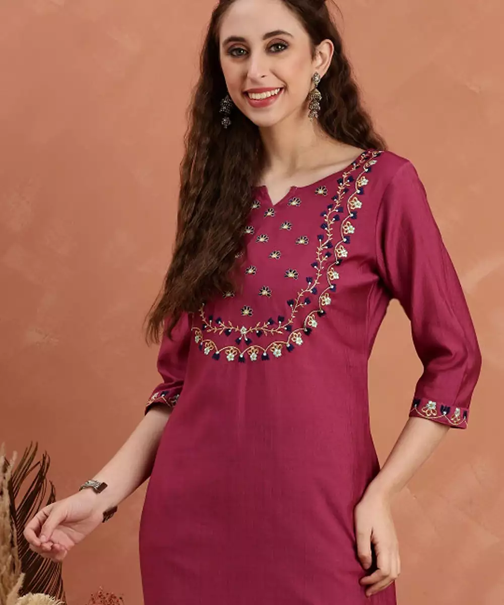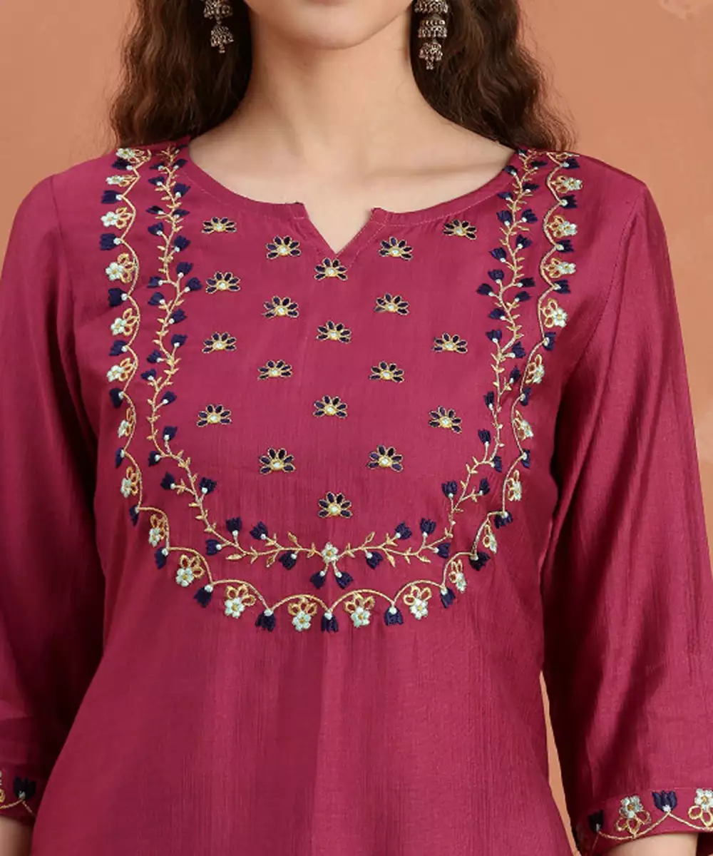 Floral Embroidered Flared Sleeves Thread Work Kurta