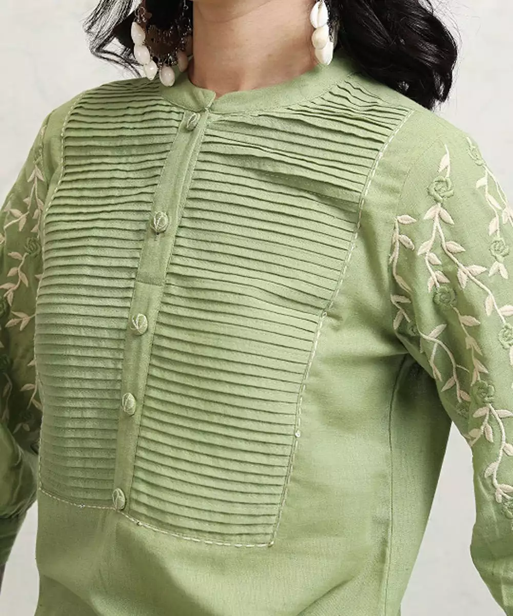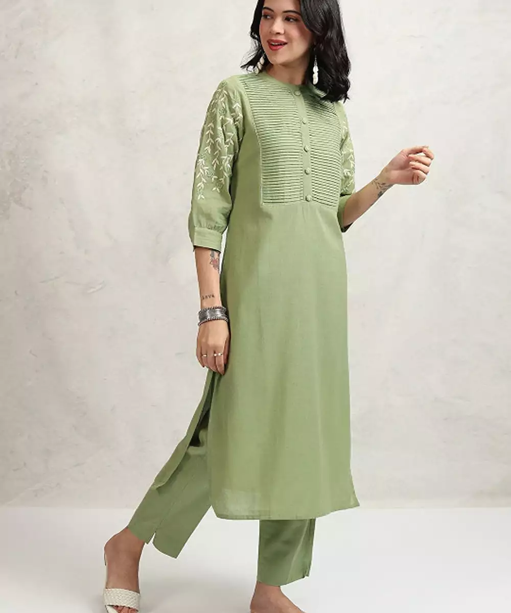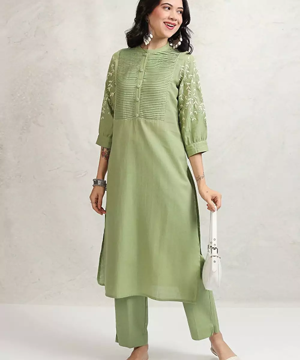 Floral Embroidered Regular Thread Work Pure Cotton Republic Day Kurta With Trousers