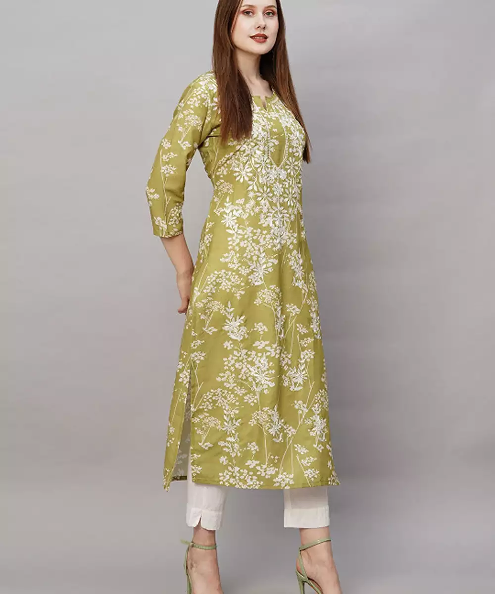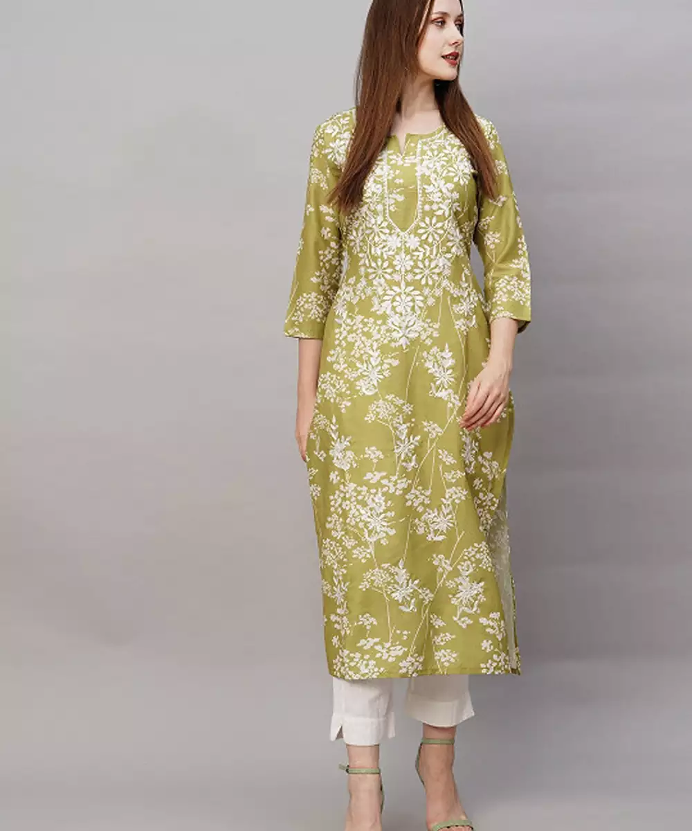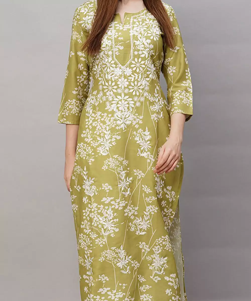 Floral Embroidered Thread Work Regular Republic Day Republic Day Kurta