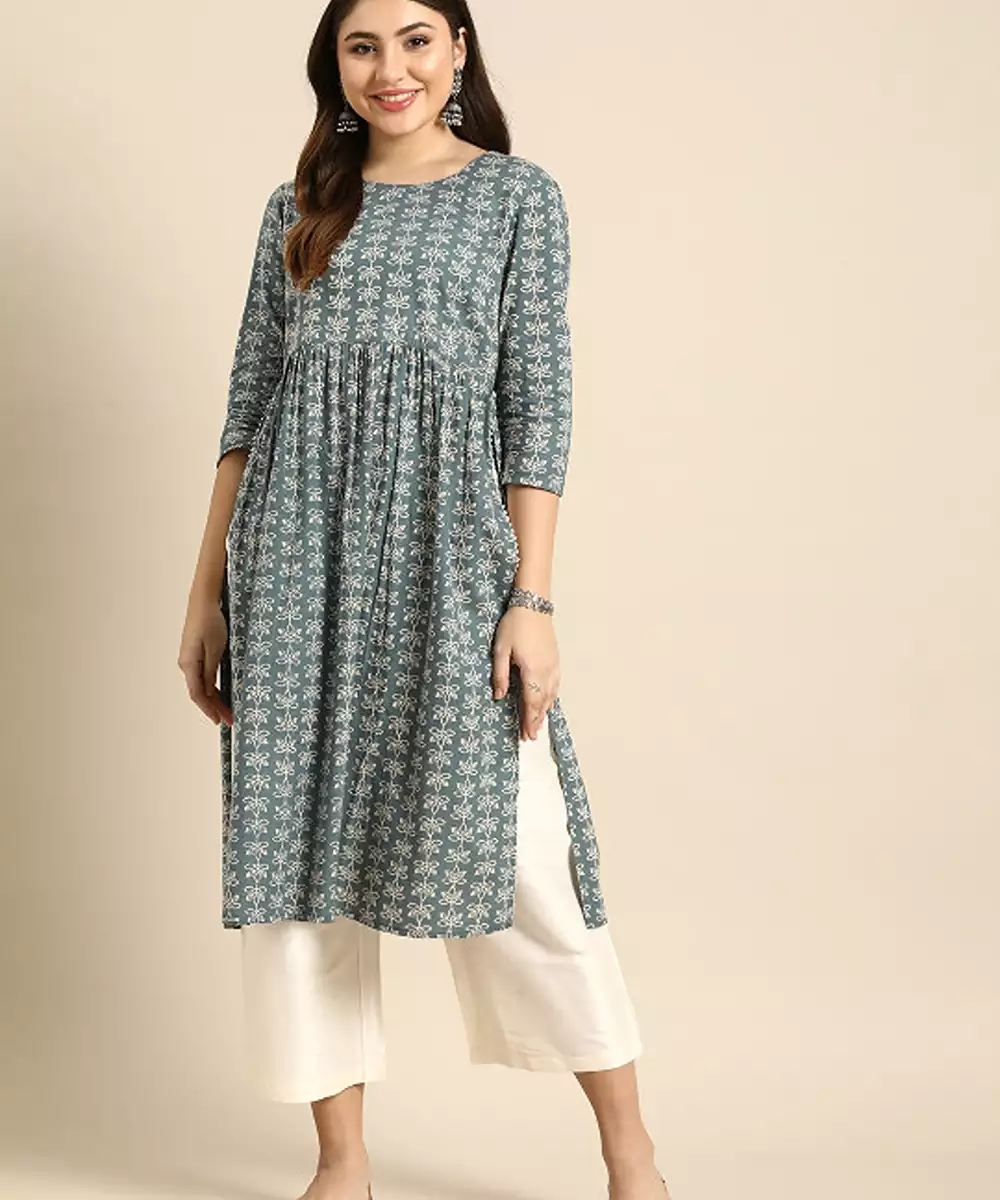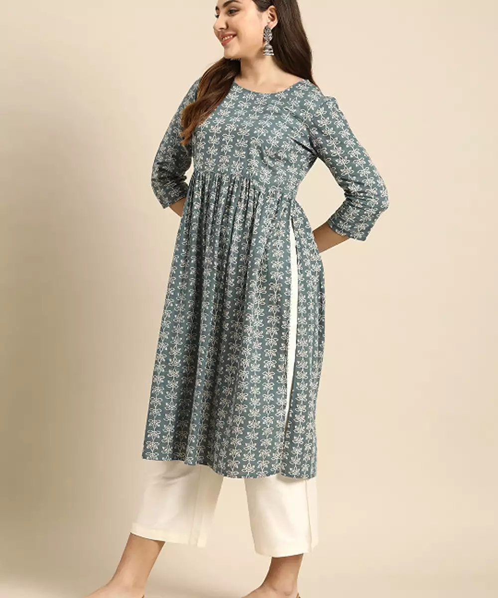 Floral Printed High Slit Pure Cotton Kurta