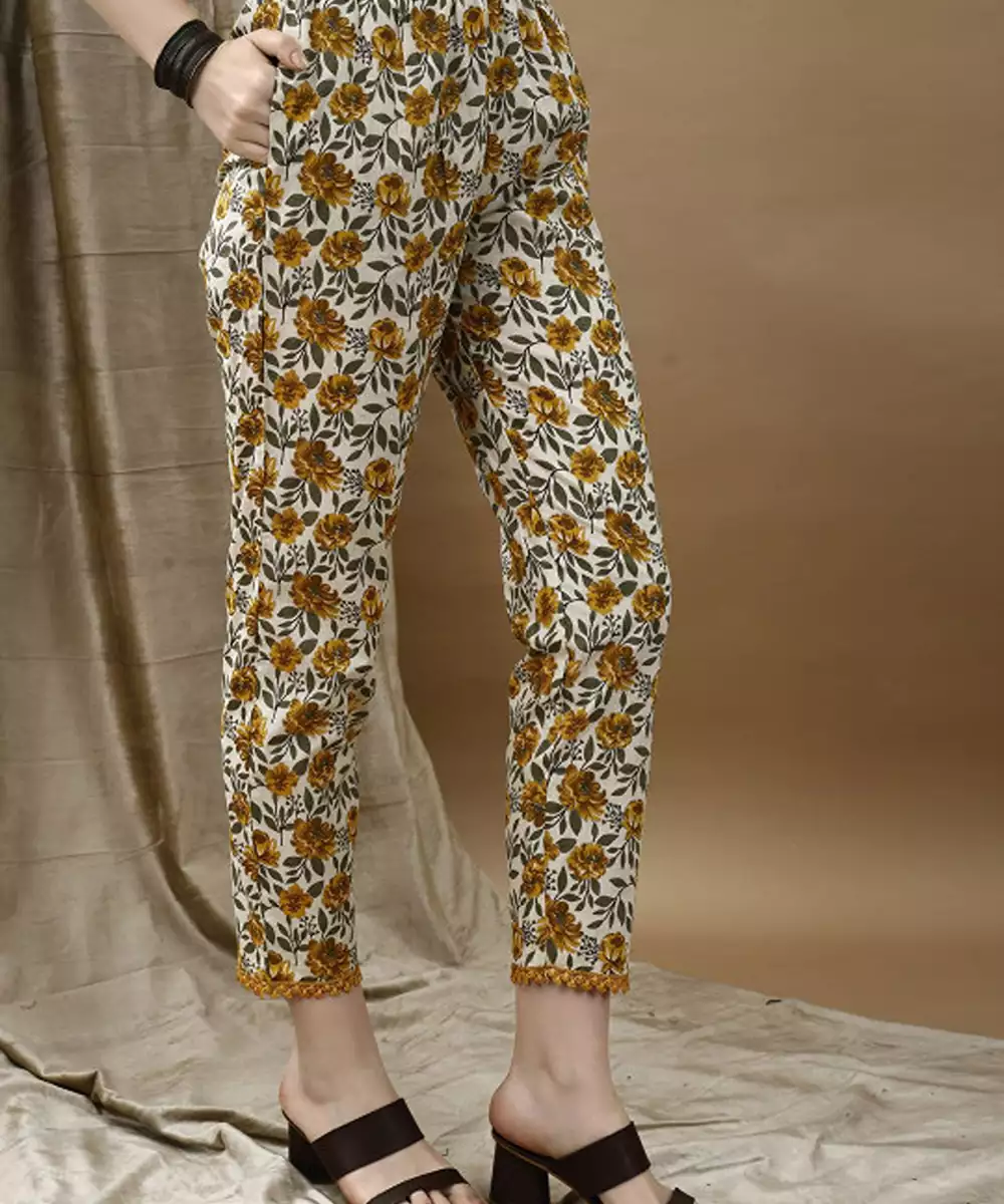 Yellow And White Printed Kurta With Trousers With Dupatta Kurta Design: