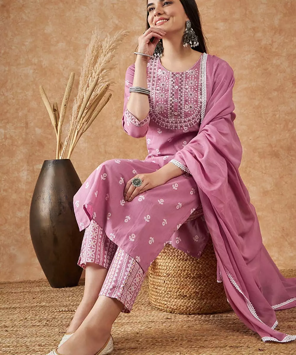 This Kurta Set Consists Of Kurta, Trousers And Dupatta Kurta Design