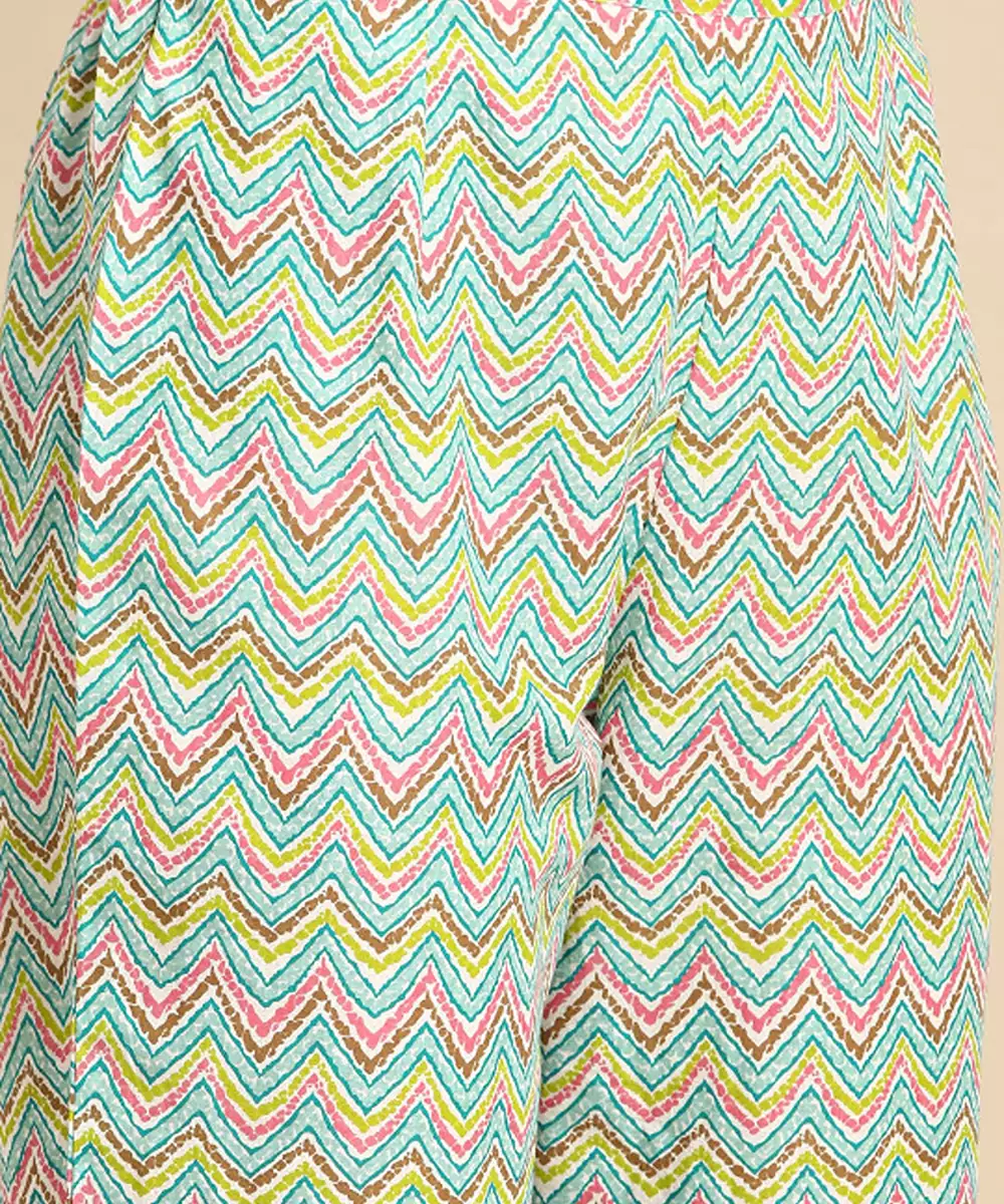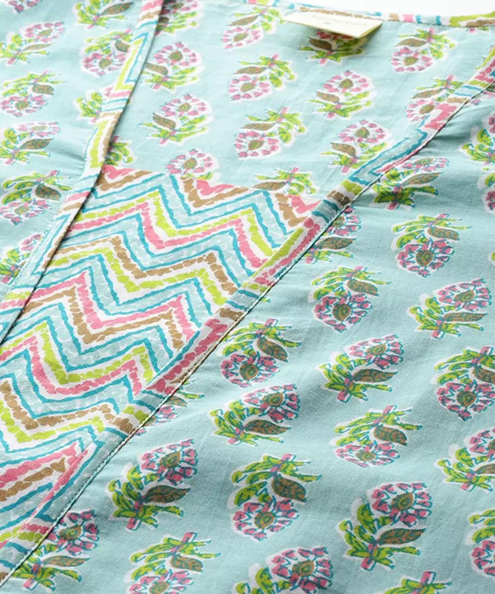 Turquoise Blue Printed Kurta With Trousers With Dupatta Kurta Design: