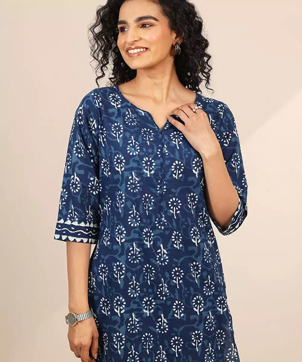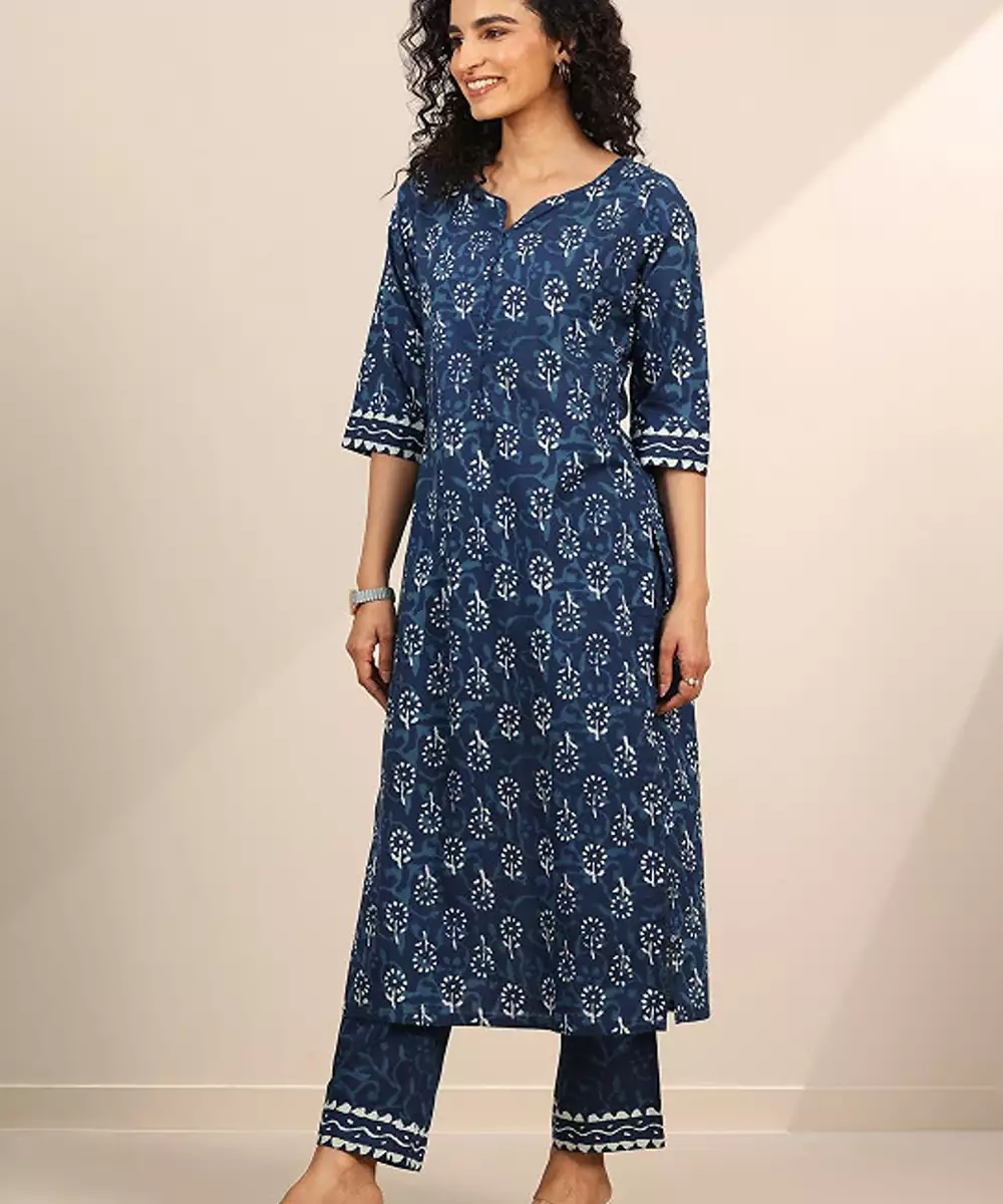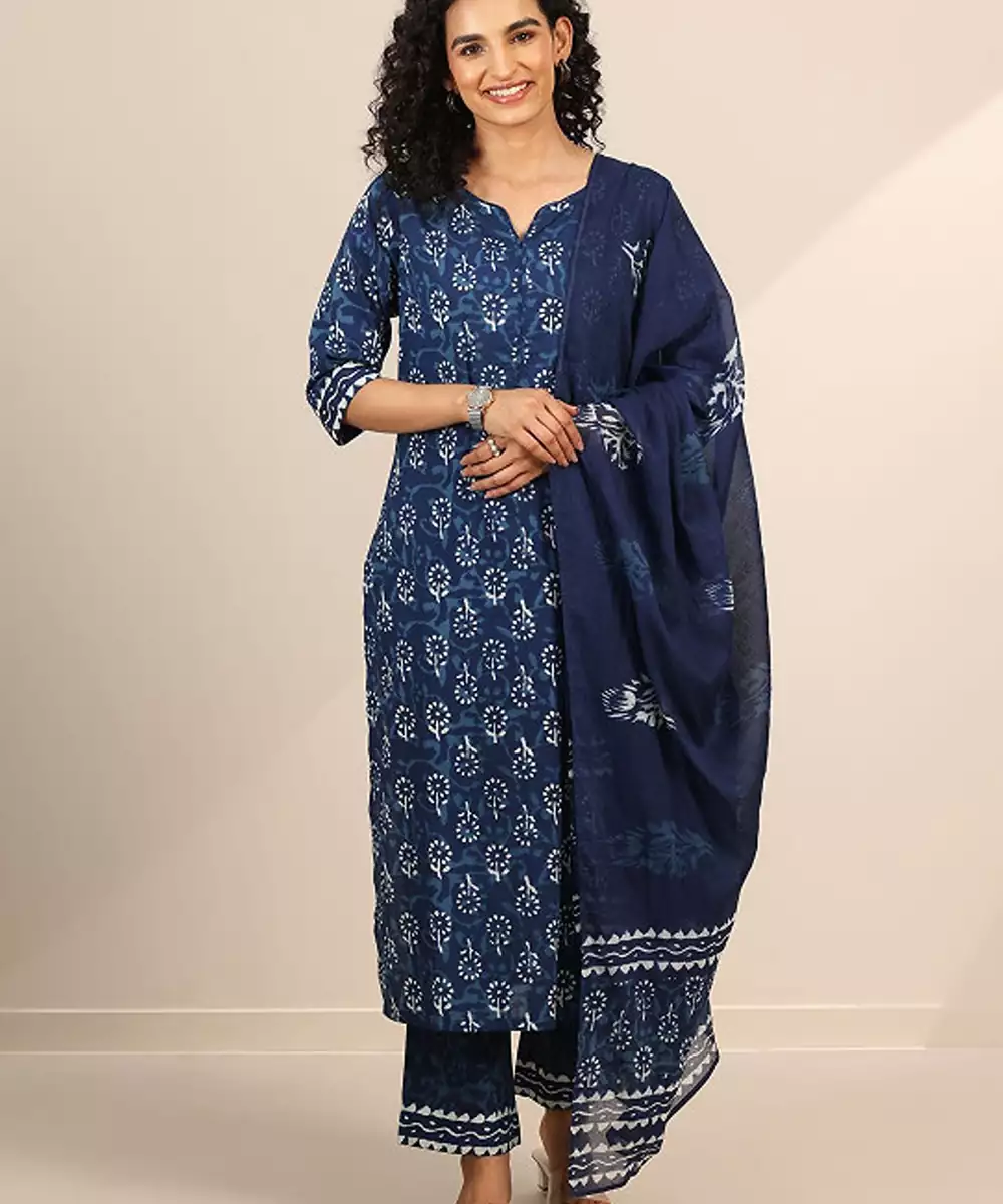 Blue Printed Kurta With Trousers With Dupatta Kurta Design: