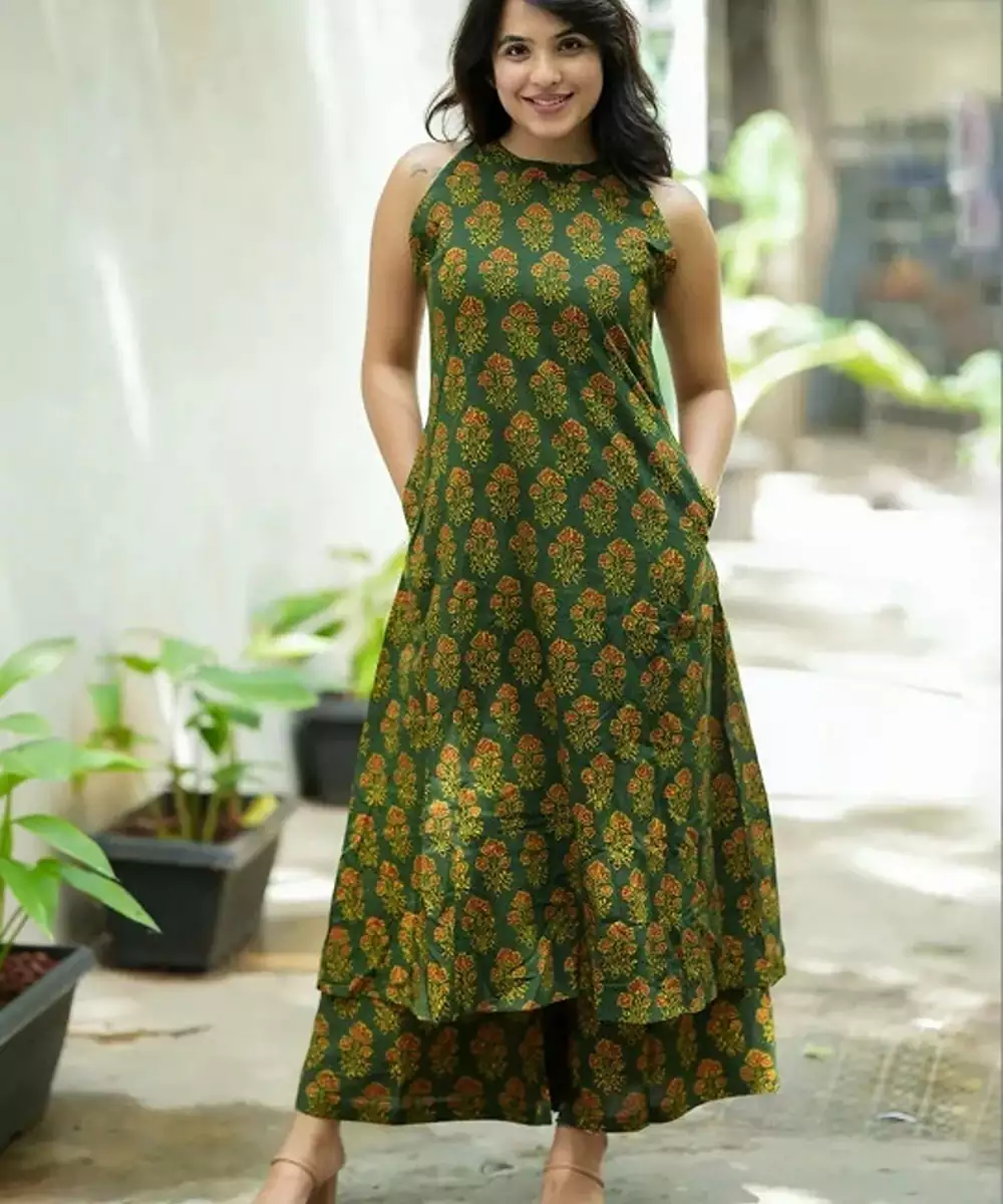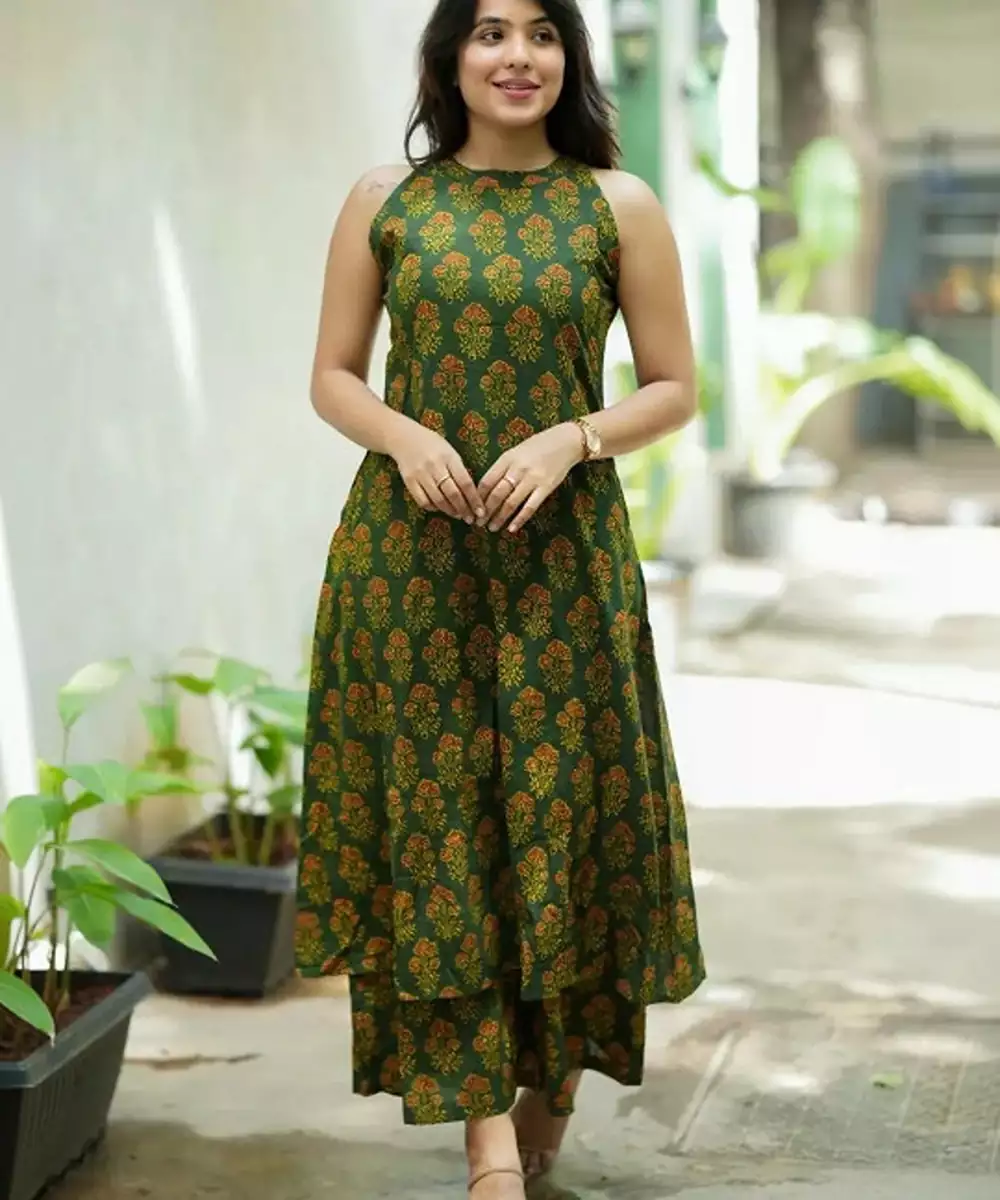 Green Printed Kurta With Palazzos Kurta Design:
