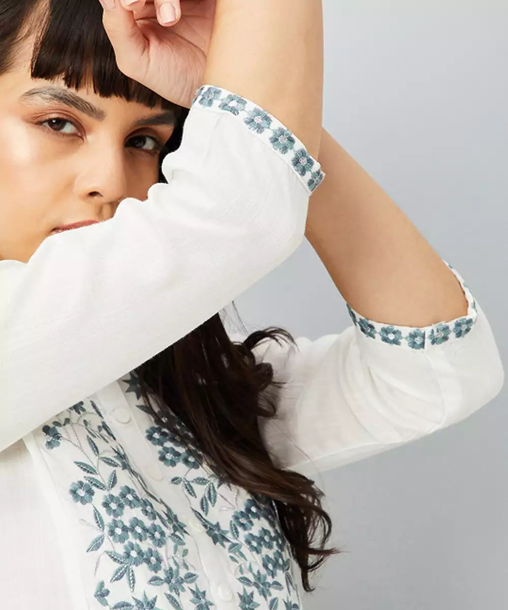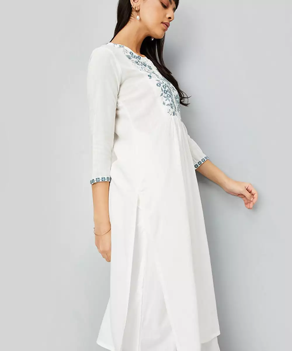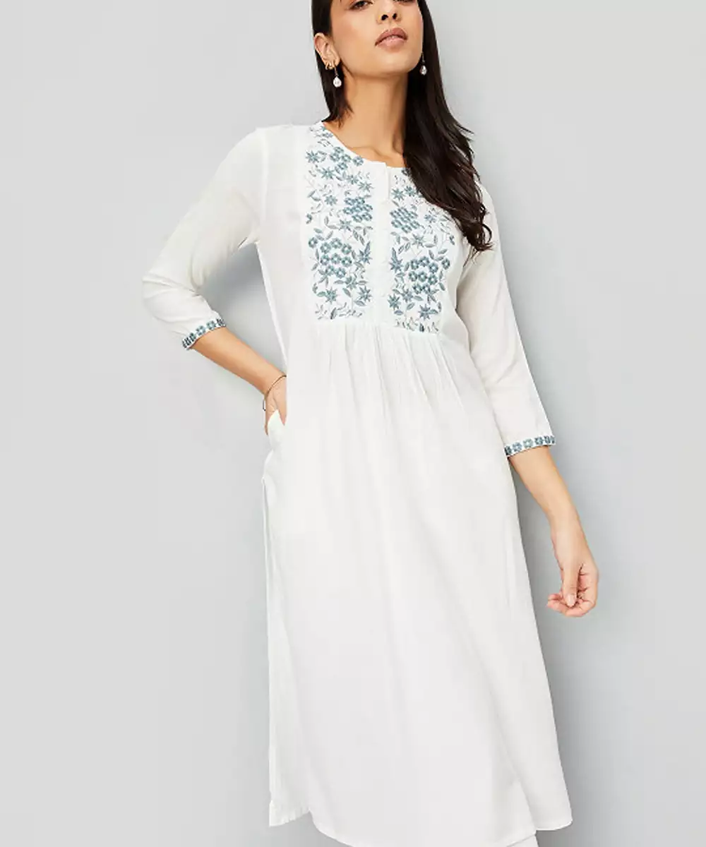 Floral Round Nek Regular Sleeves Embroidered Kurta
