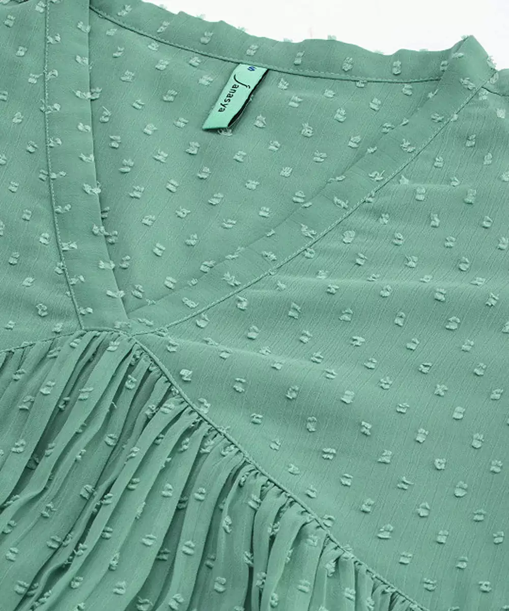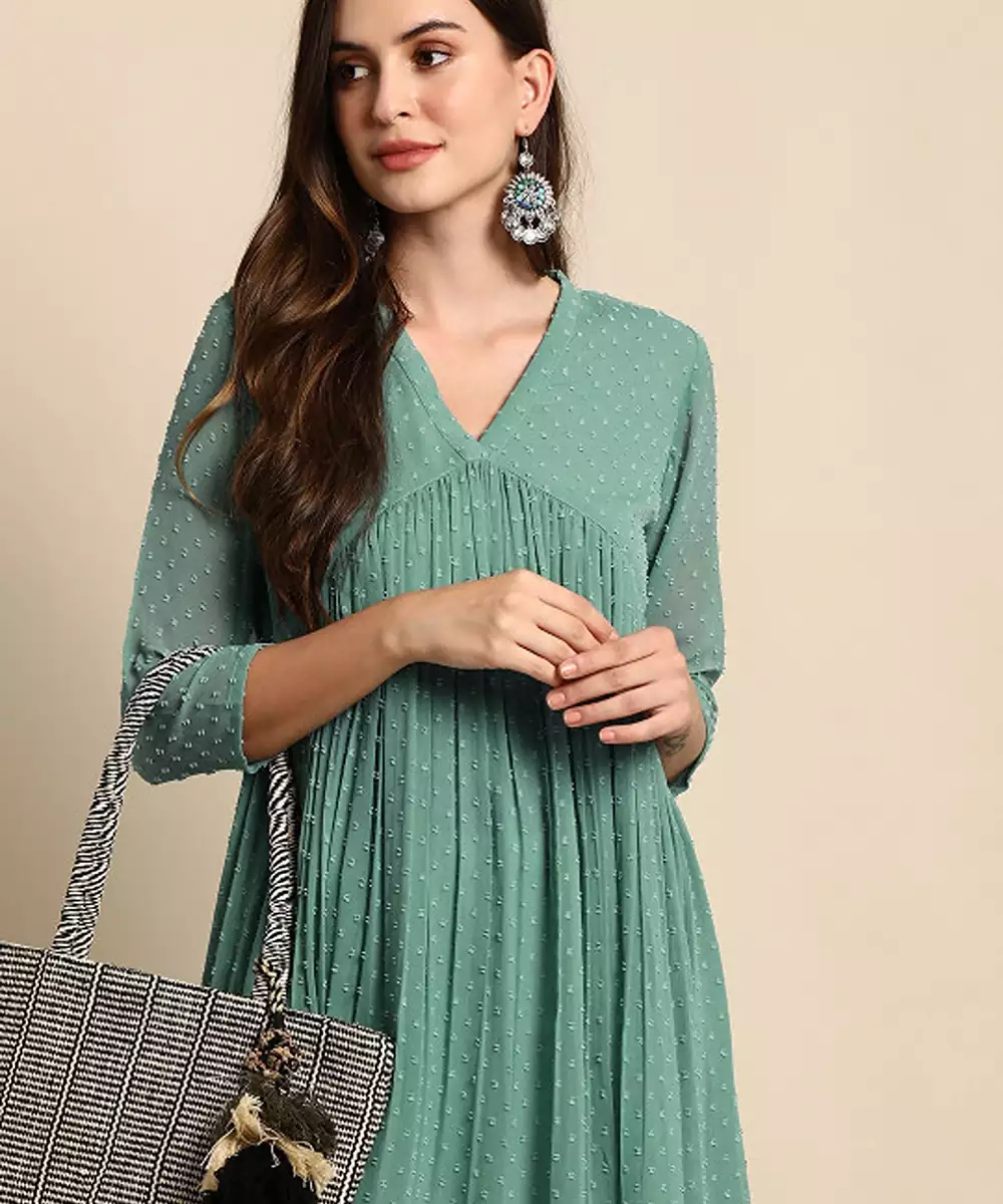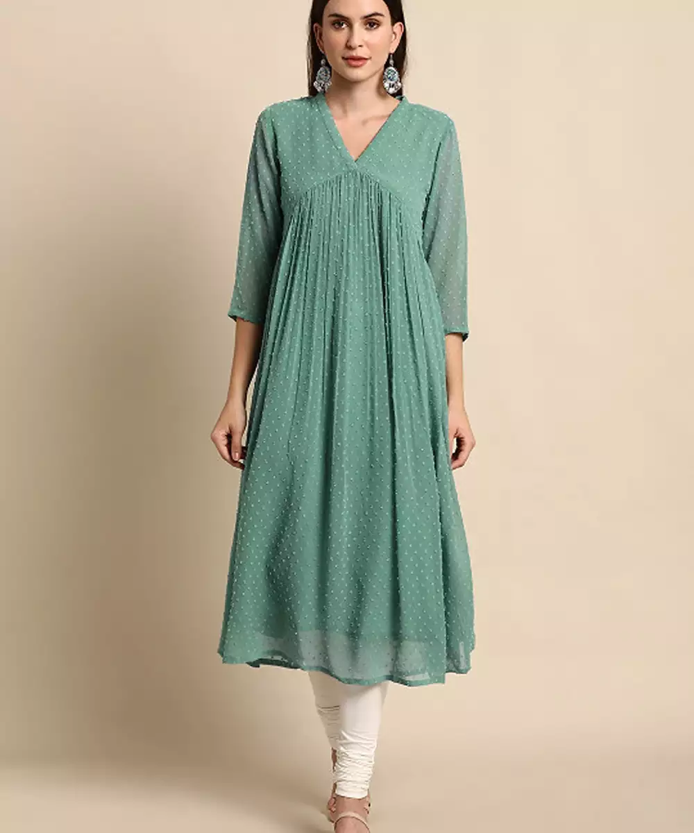 Green Chiffon Self Design Flared Kurta