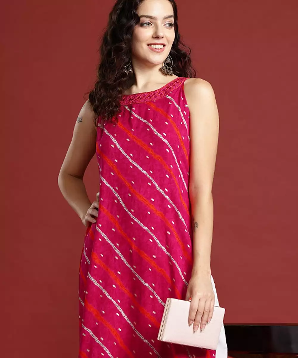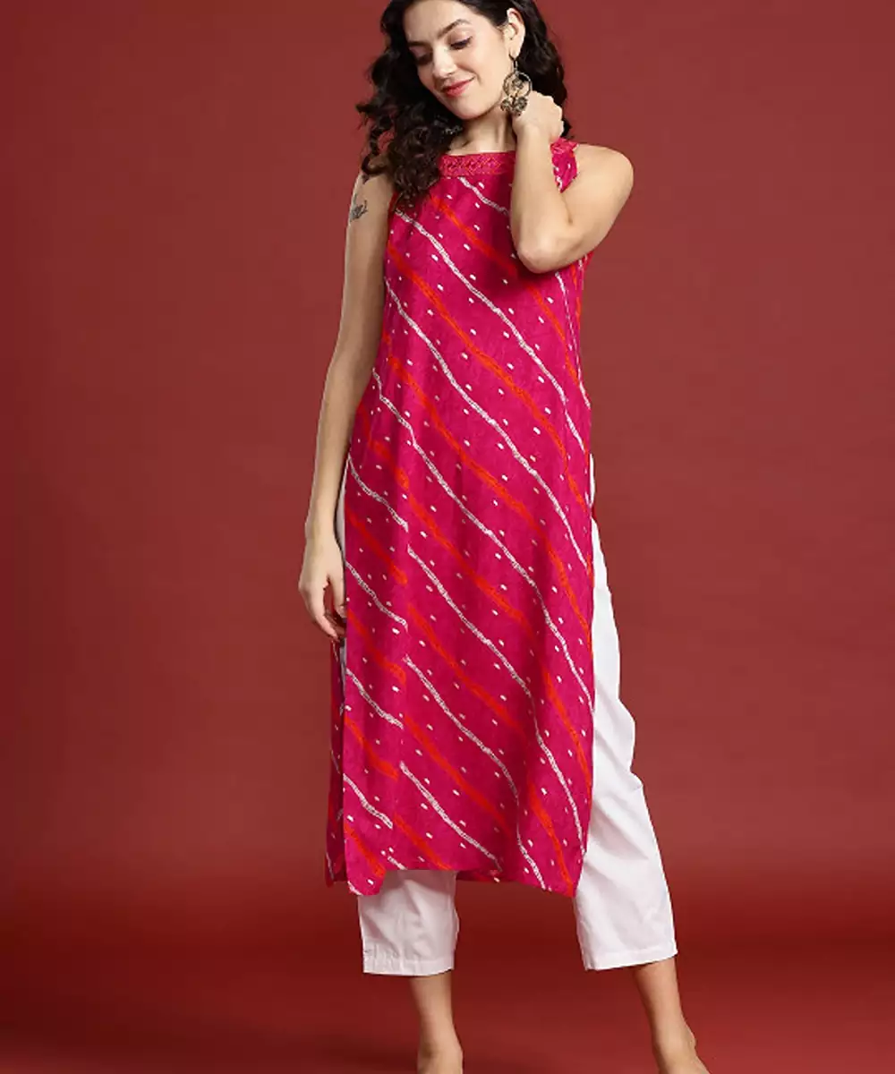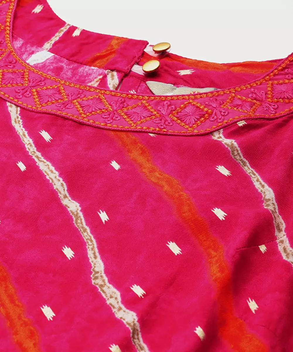 Leheriya Printed Halter Neck Thread Work Kurta
