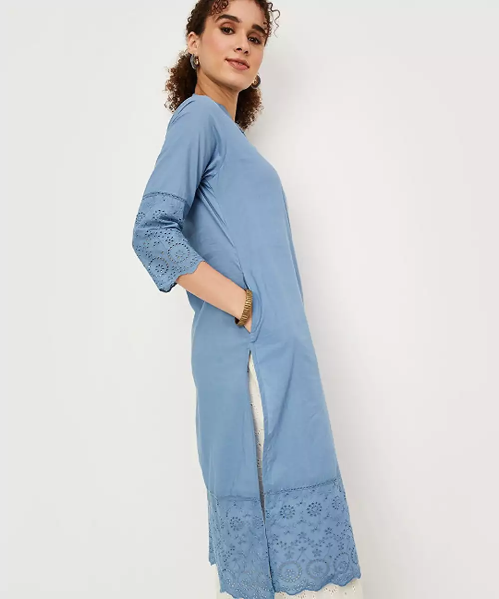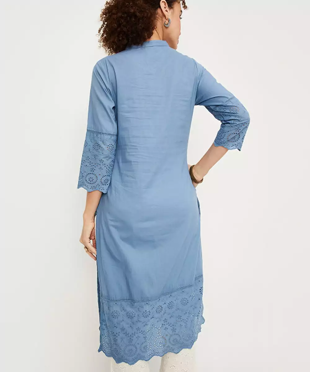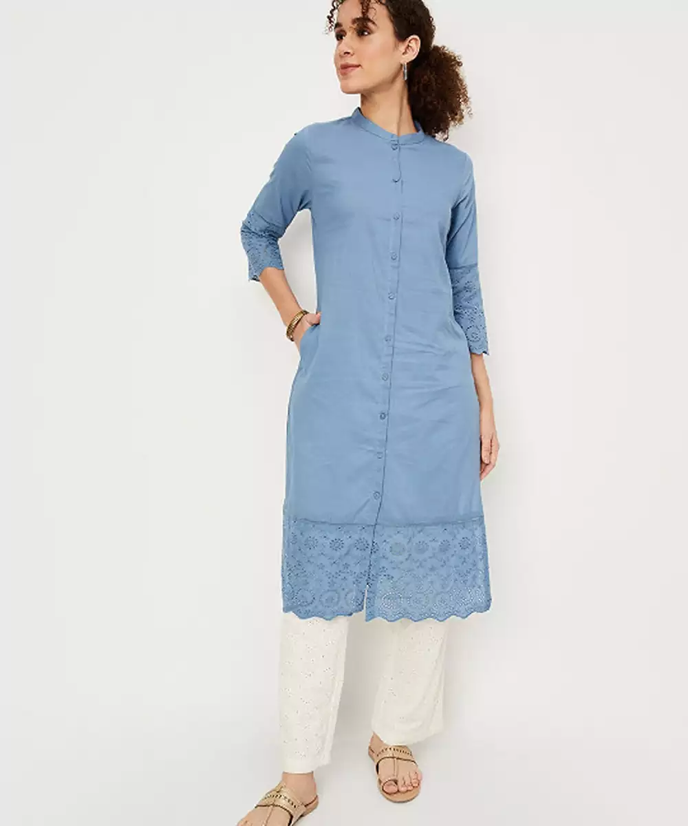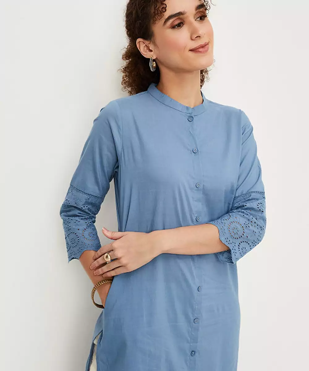Mandarin Collar A Line Cotton Kurta