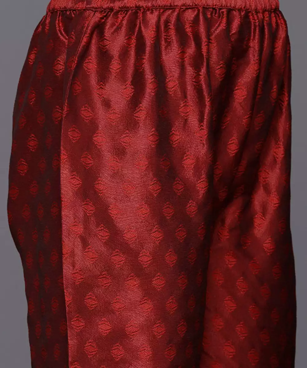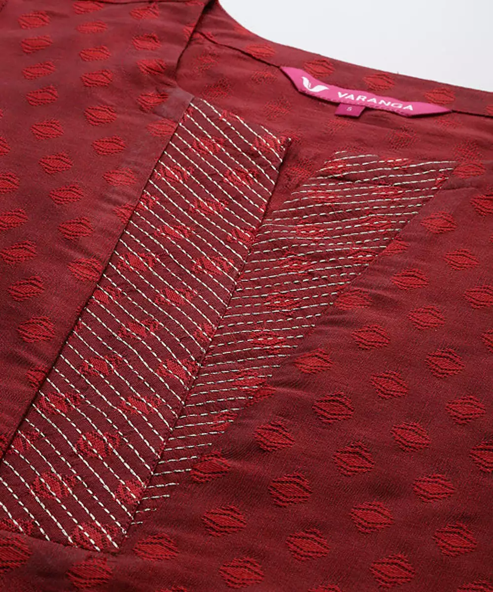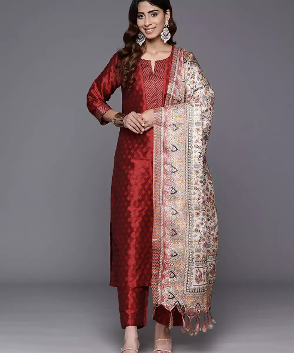 Maroon Zari Work Textured Kurta With Trouser And Printed Dupatta