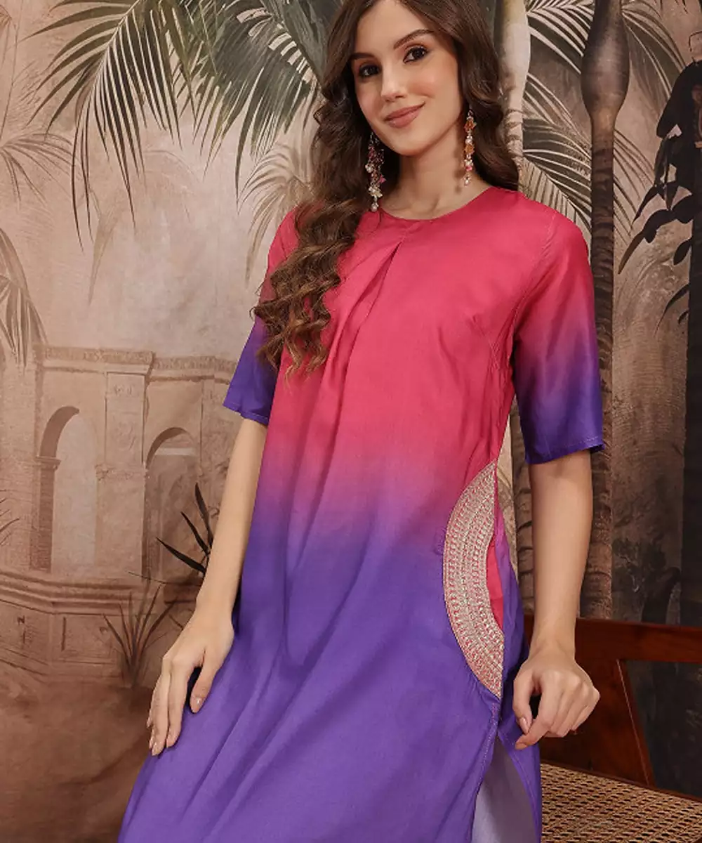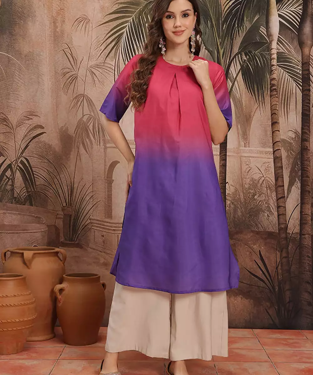 About The Brand Sangria Is A Ready To Wear Brand That Focuses On A Global Indian Woman. Sangria Has A Unique Signature Style With An Electric Collection Of Fabrics, Colors, And Patterns. The Brand Has A Modern Take On Traditional Indian Motifs And Designs With A Wide Range Of Offerings. Product Description This Kurta Is A Must Have In Your Closet. With The Breezy Silhouette And Cheerful Print And Pattern, This Kurta Will Become Your Favourite Go To Outfit. Top It Off With Mojaris Or Heels For An Aesthetic Look.