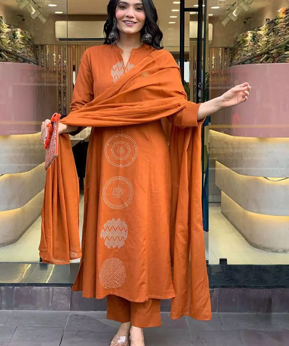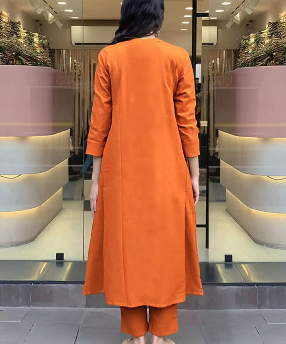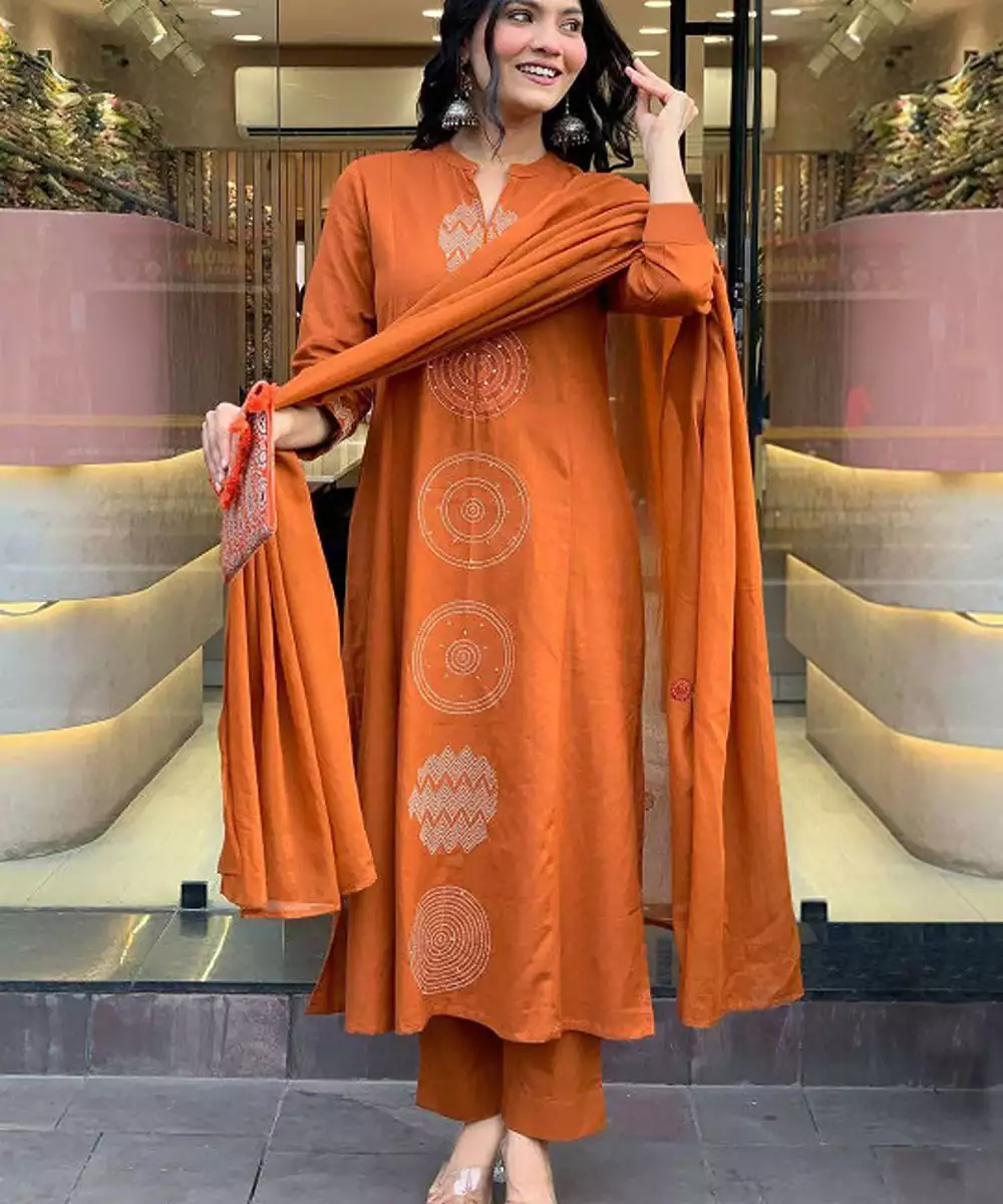 Orange Printed Kurta With Trousers With Dupatta Kurta Design: