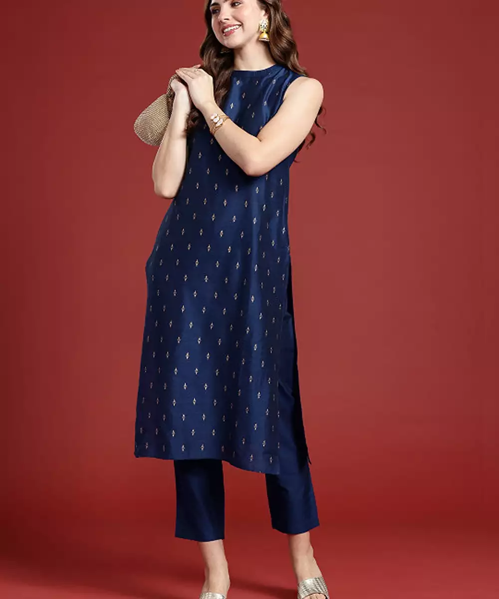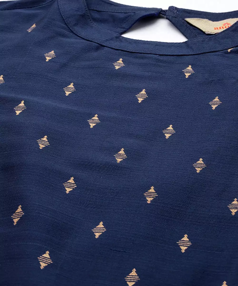 Navy Blue Printed Kurta With Trousers Kurta Design: