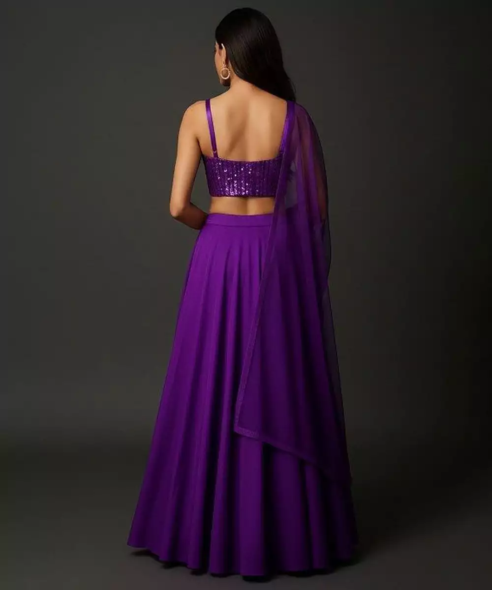 Purple Sequin Net Lehenga Set