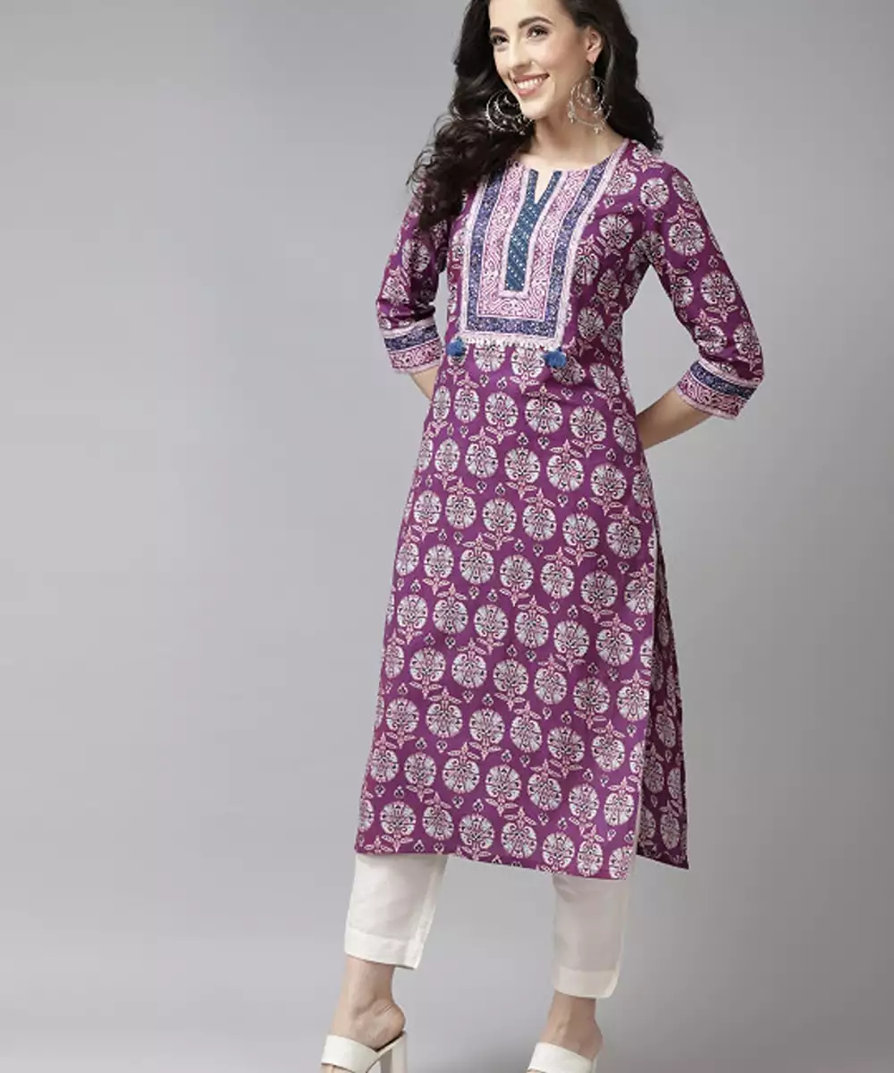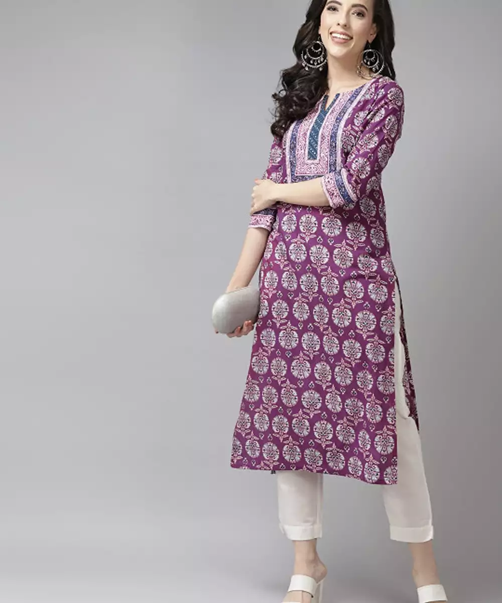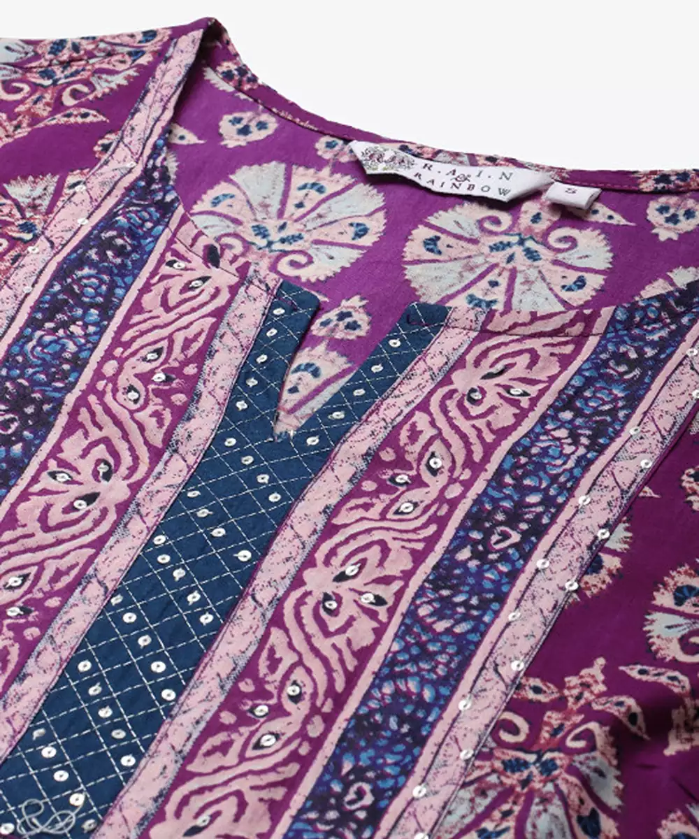 Purple & White Pure Cotton Ethnic Motifs Printed Kurta