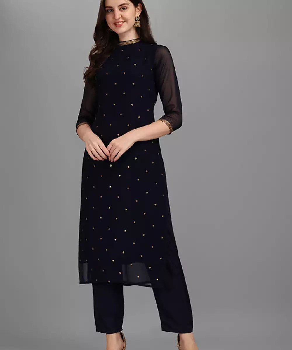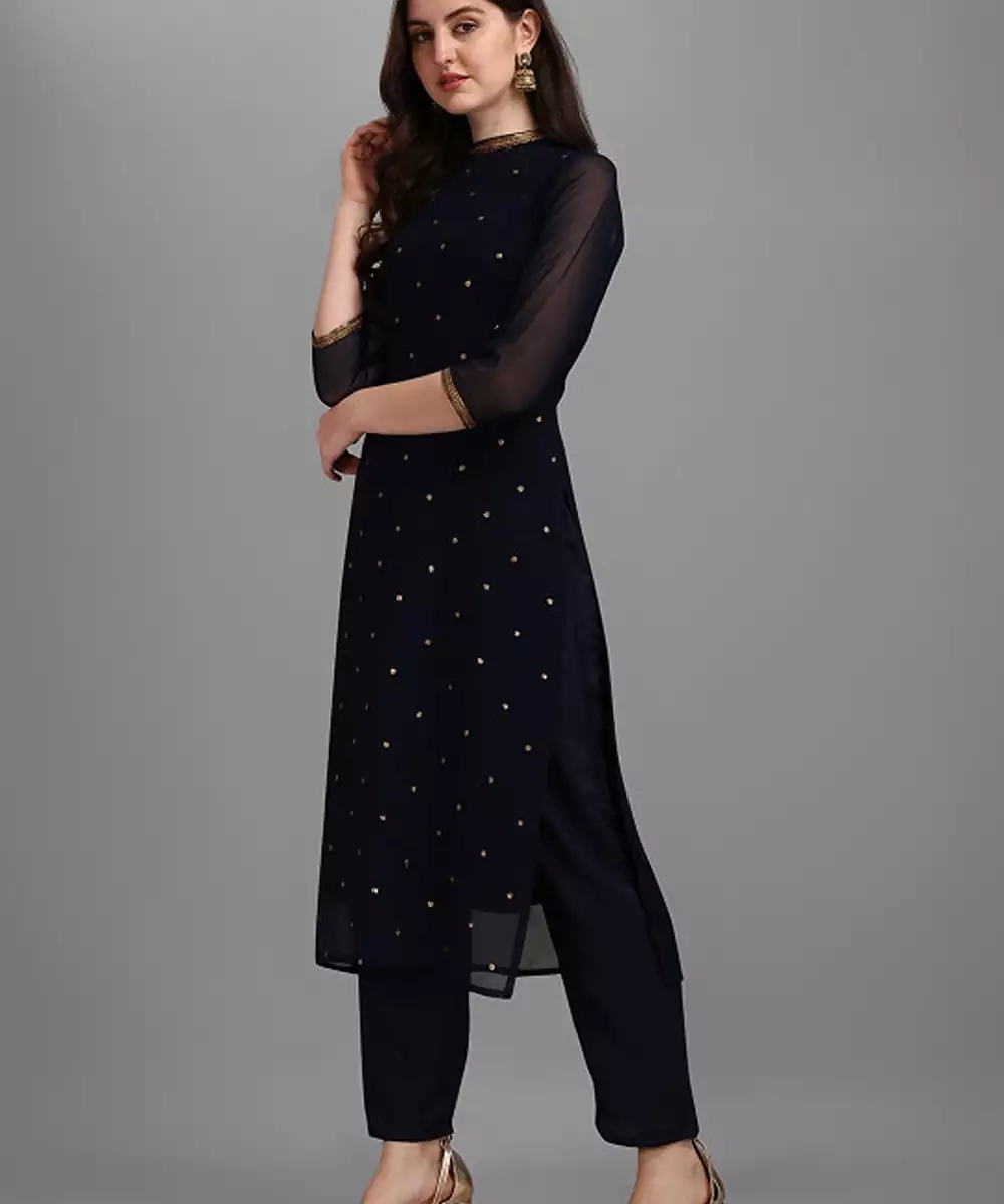 Navy Blue Embellished Kurta With Trousers Kurta Design: