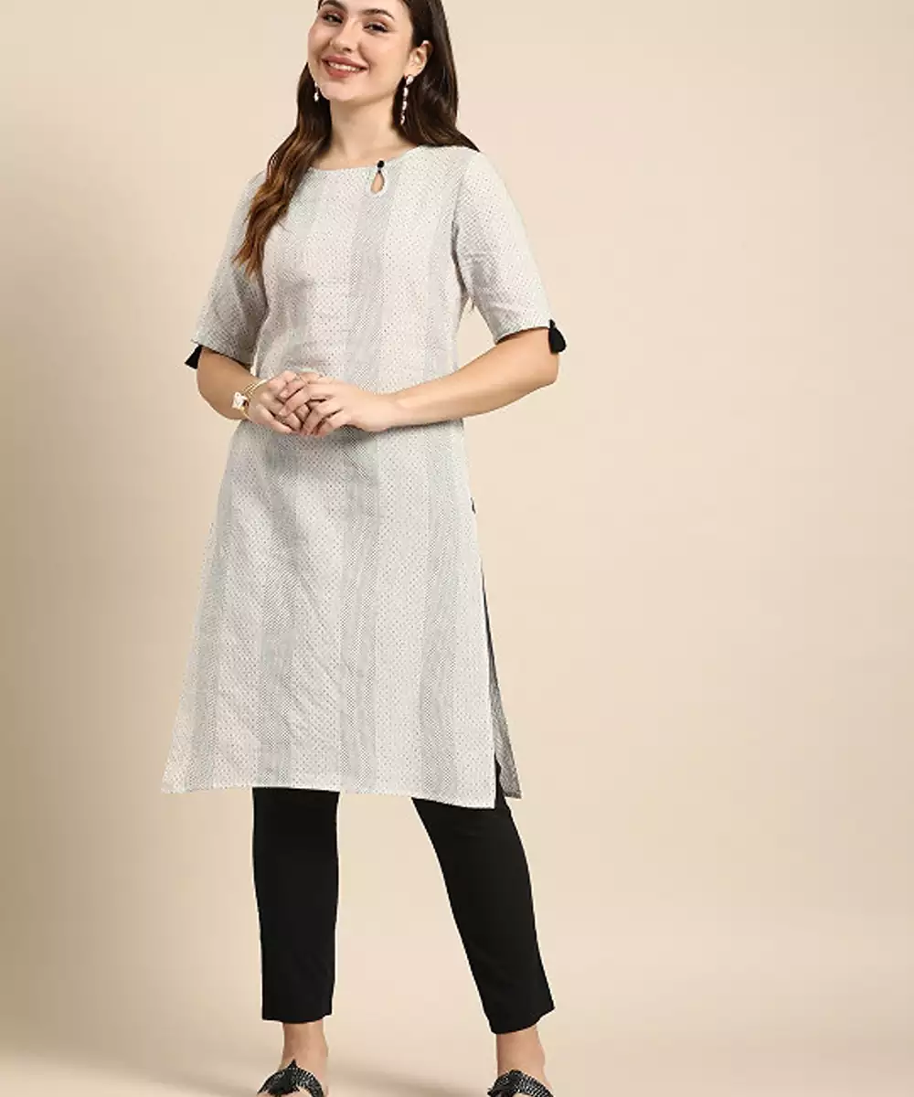 Striped Keyhole Neck Cotton Kurta