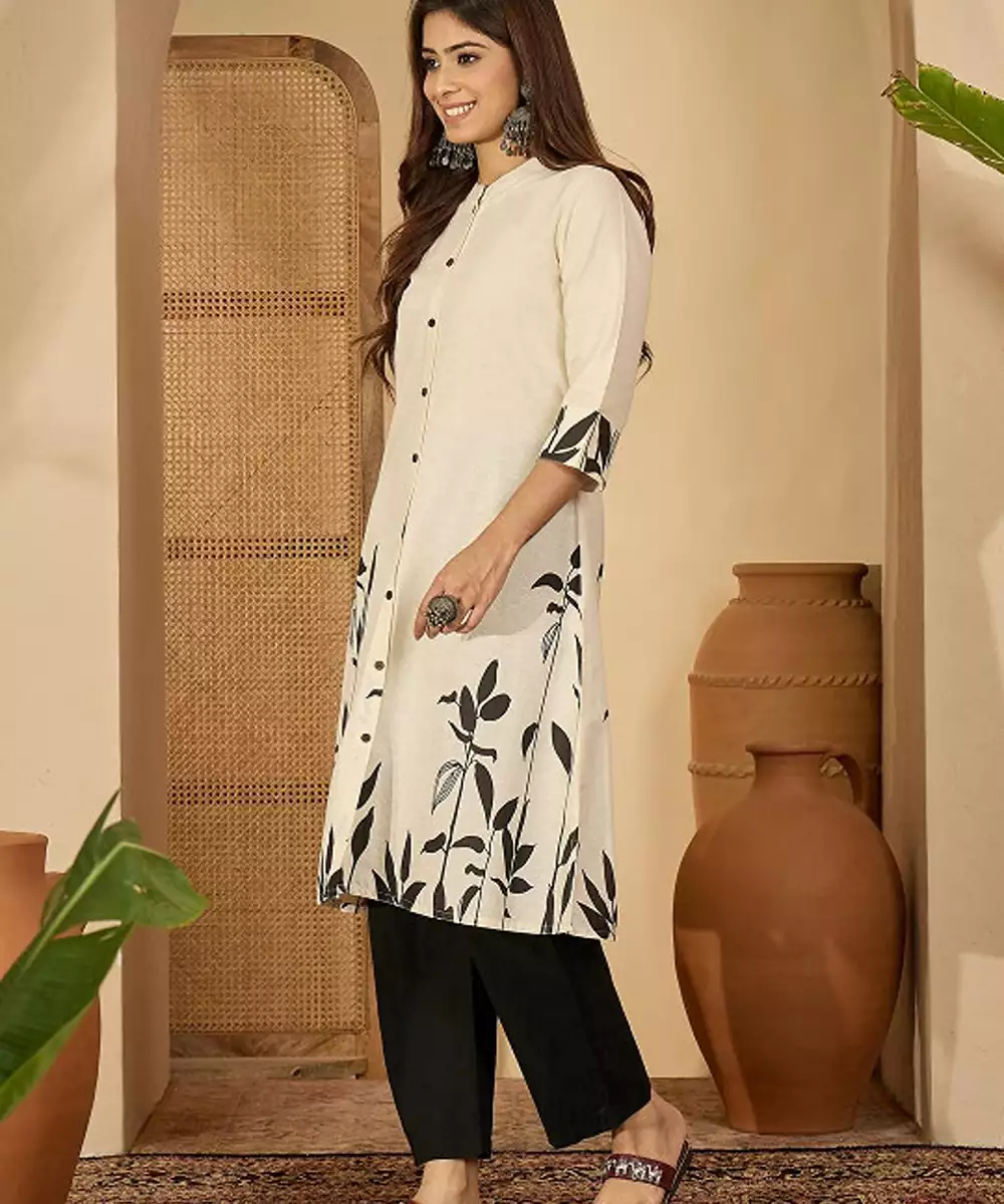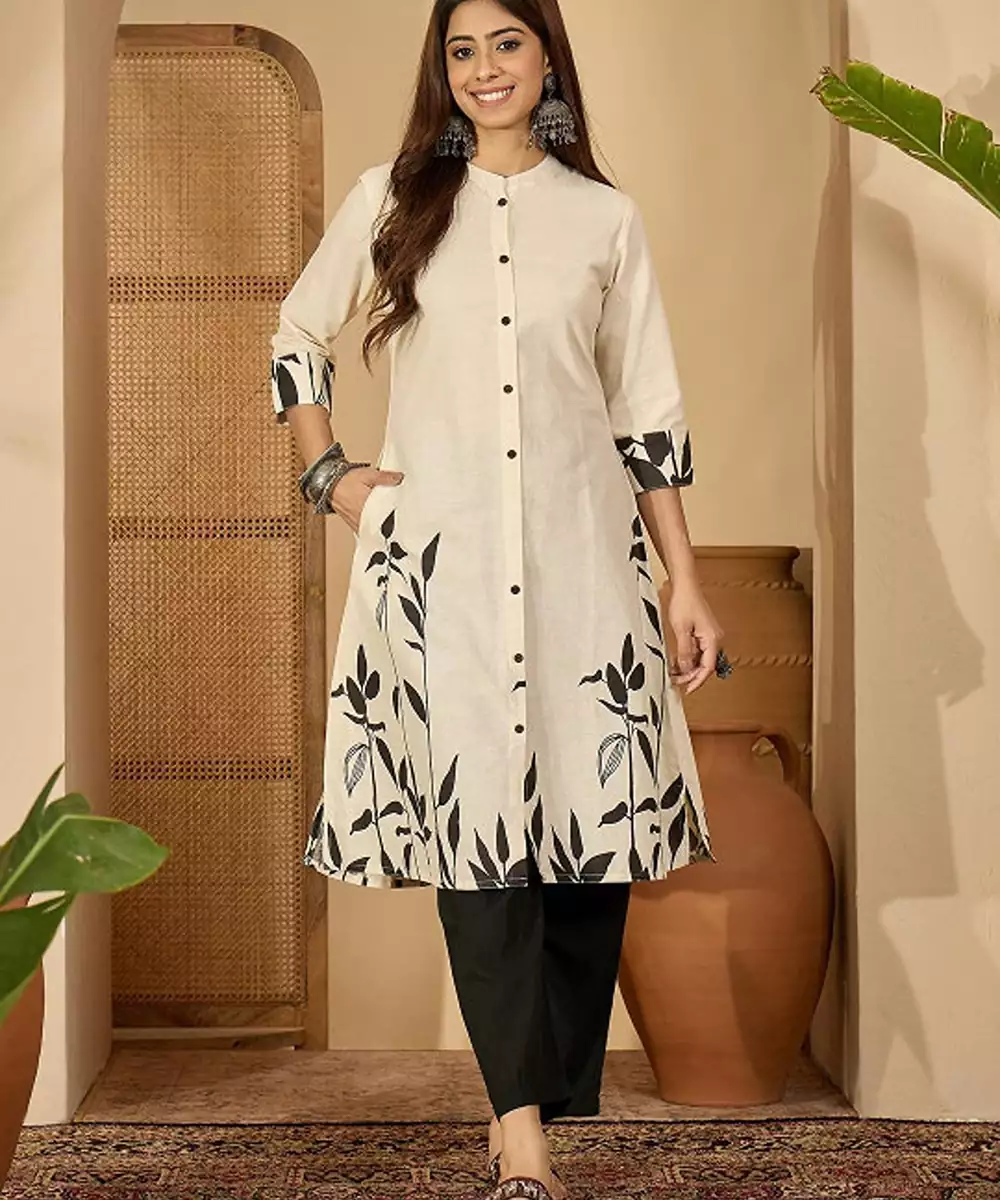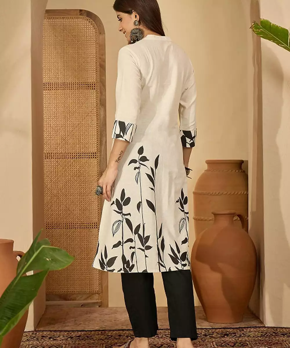 White Tribal Printed Thread Work Floral Kurta