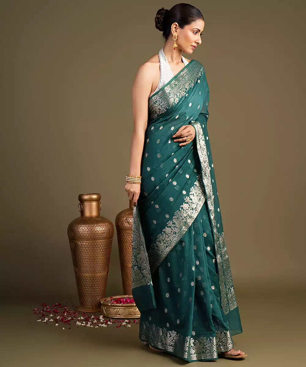 Teal Blue Handloom Pure Silk Saree