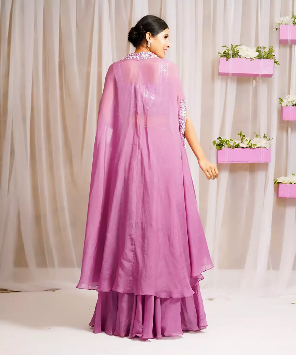 Pink Embroidered Mirror Work Georgette Yasir Kurta (Rani Pink)