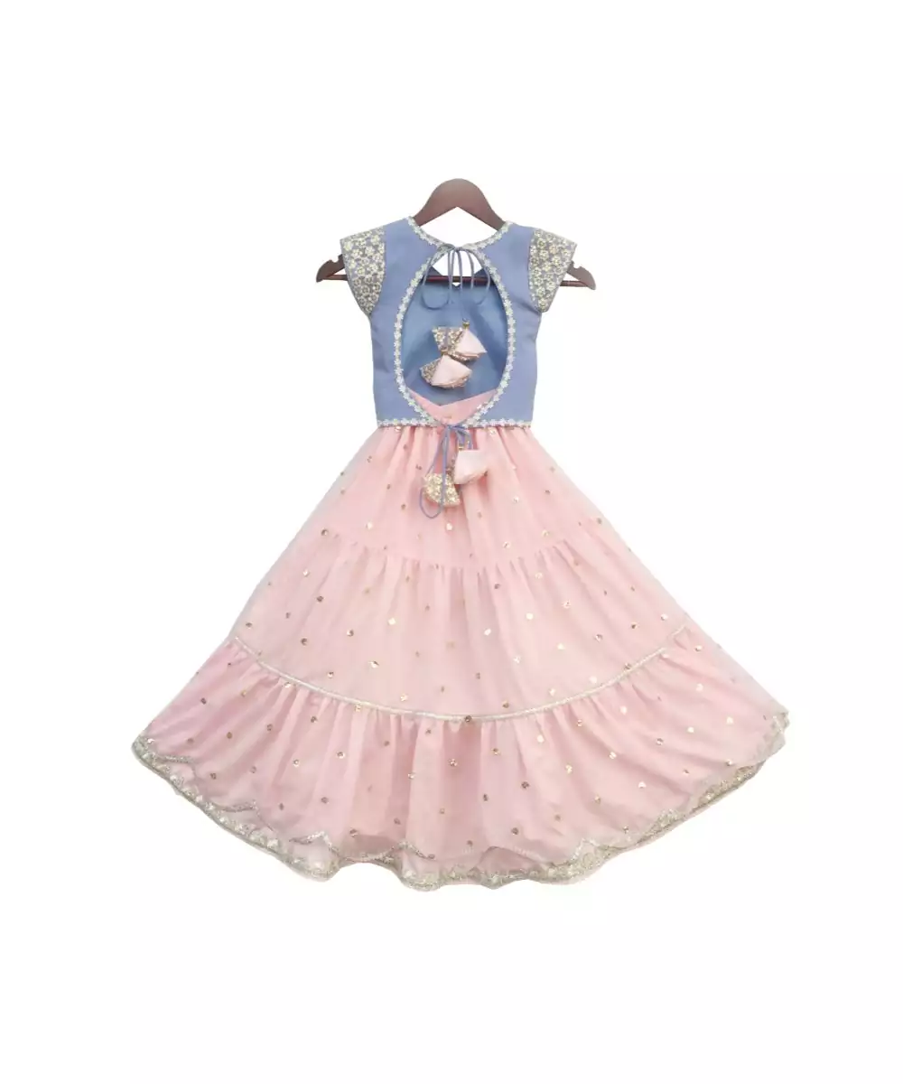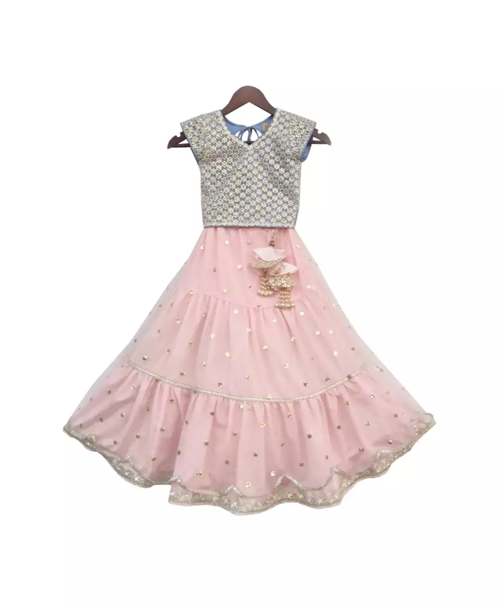 Blue Choli With Pink Boti Net Lehenga