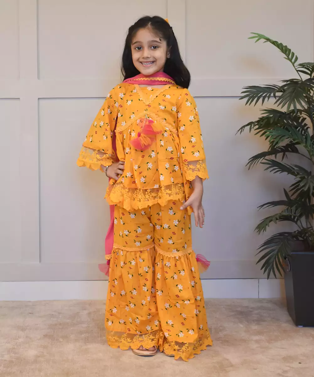 Components: 1 Kurti , 1 Sharara And 1 Dupatta