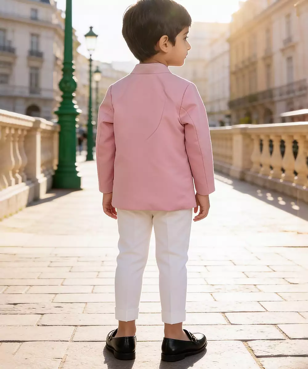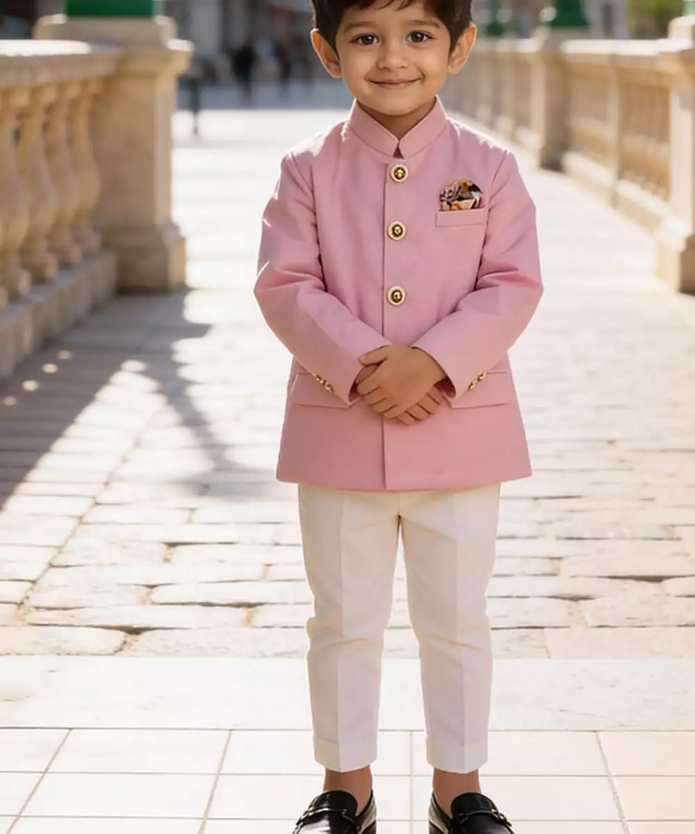 This Pink Bandhgala Set With Pant Offers A Structured And Contemporary Silhouette. Crafted For Elegance, It Features A Clean Finish That Enhances Its Modern Appeal. Perfect For Festive Or Semi Formal Occasions, It Pairs Effortlessly With Minimal Accessories For A Polished And Sophisticated Look.