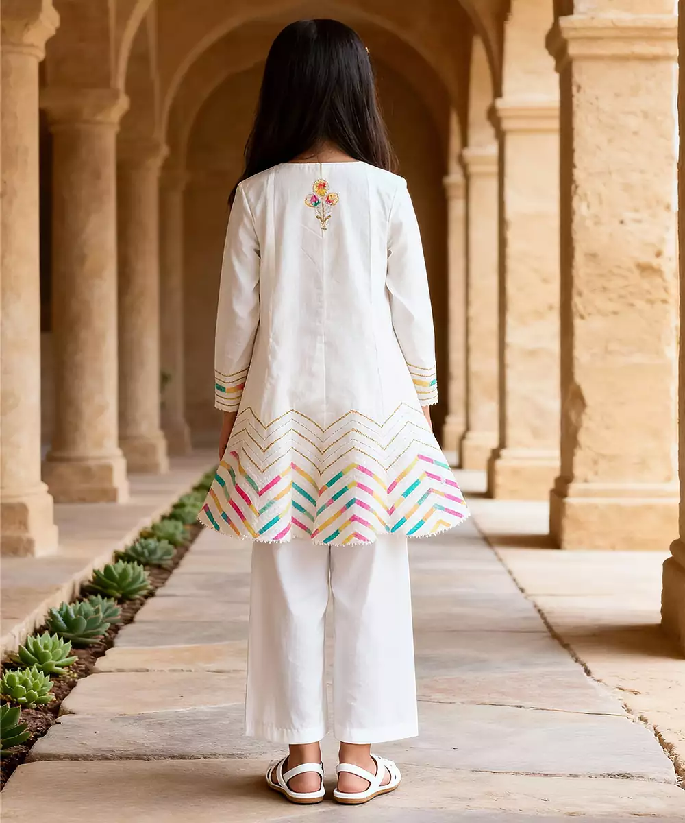This White Embroidered Cotton Kurti Set Is The Epitome Of Understated Elegance. The Soft Cotton Fabric Ensures Comfort, While Delicate Embroidery Adds A Festive Touch. Paired With A Matching Bottom And Dupatta, This Versatile Ensemble Is Perfect For Casual Celebrations, Daytime Events, Or Festive Occasions Where Simplicity Meets Sophistication.