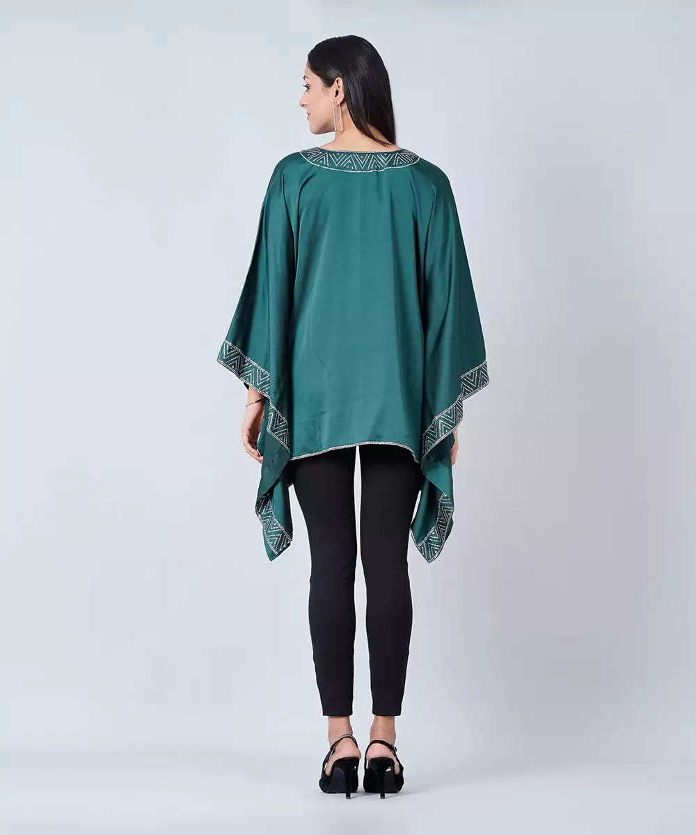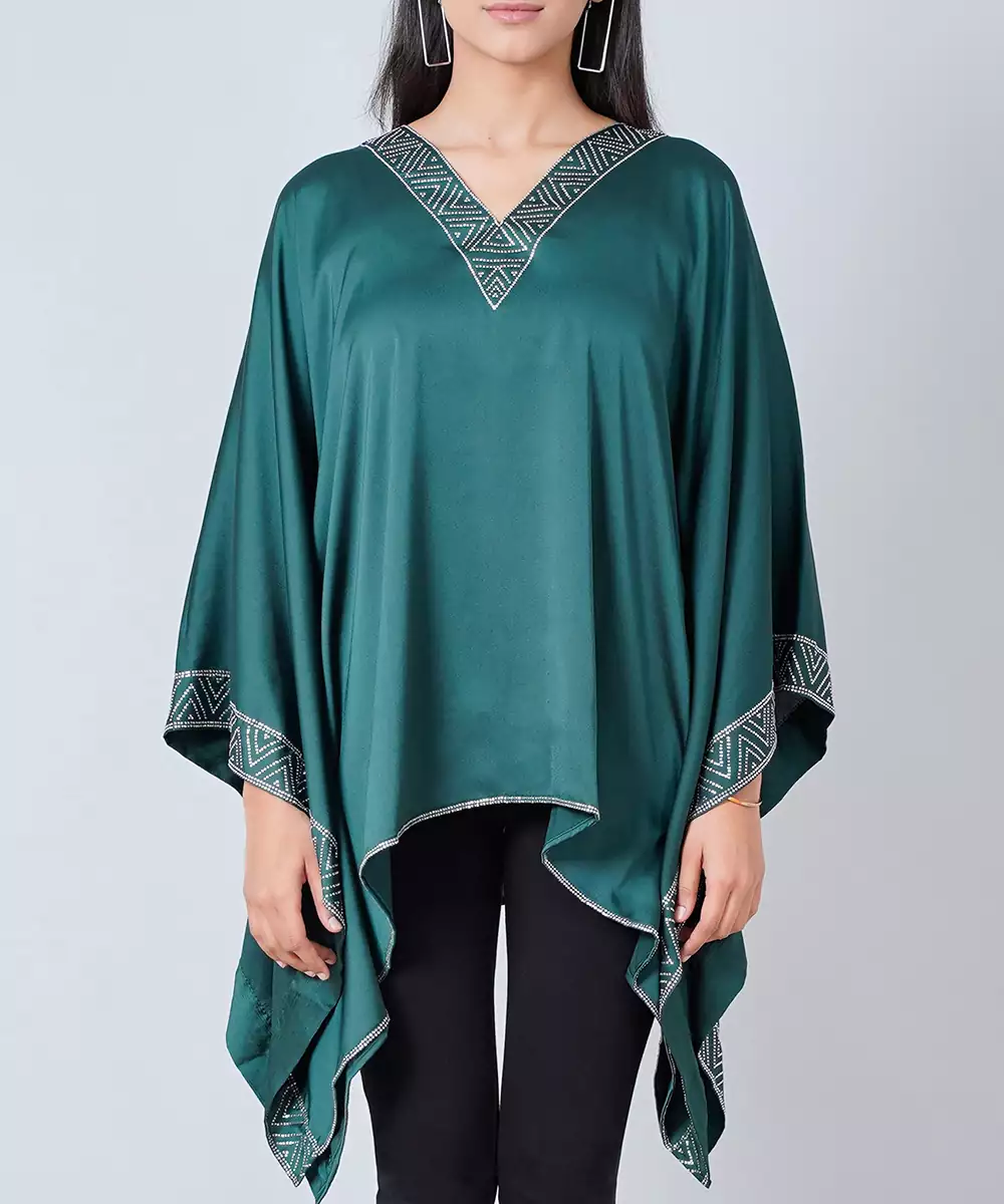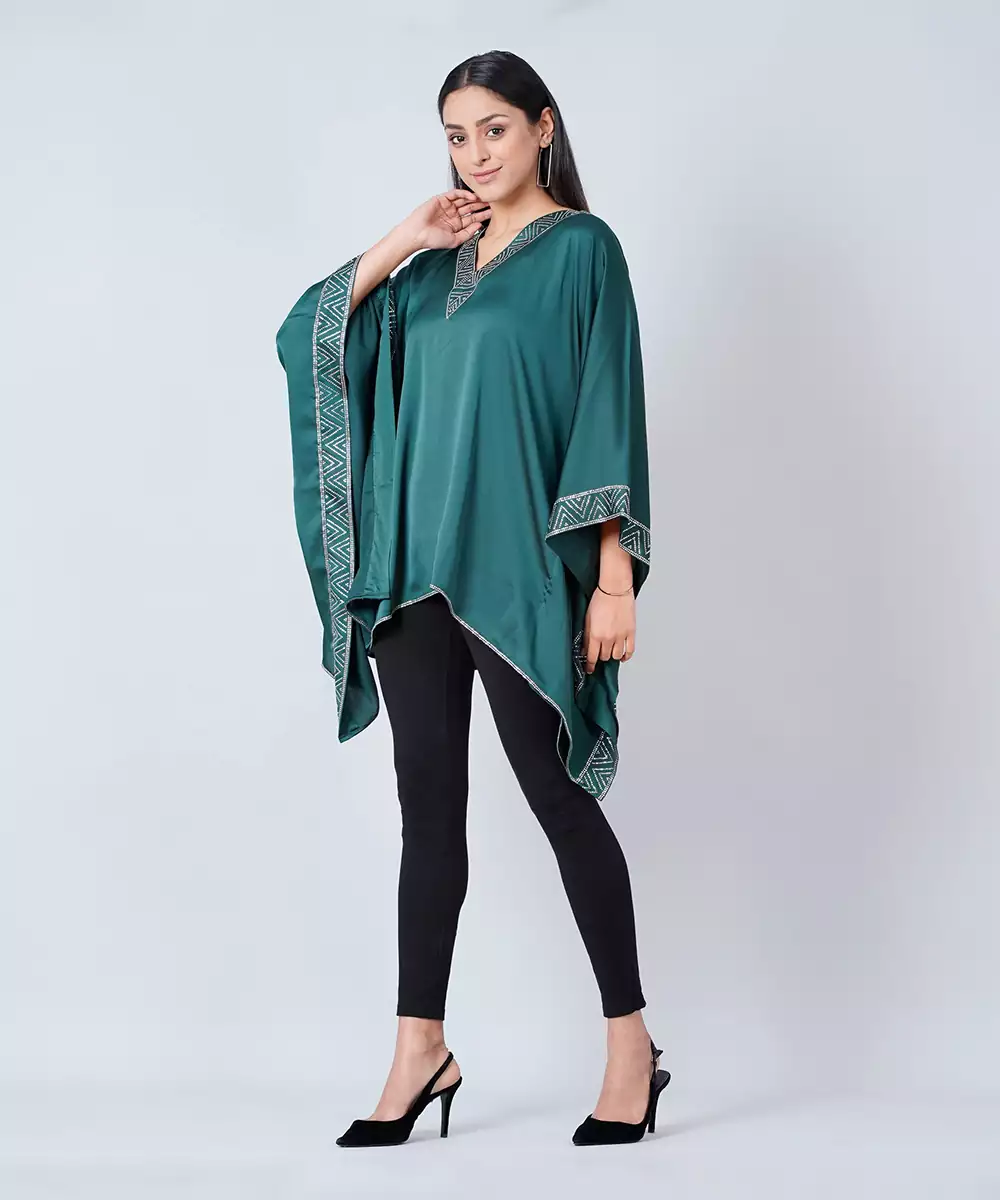 This Flattering & Feminine Dark Green Tunic With Crystal Embellishment At Neckline Can Be A Perfect Tunic To Make A Big Style Statement.