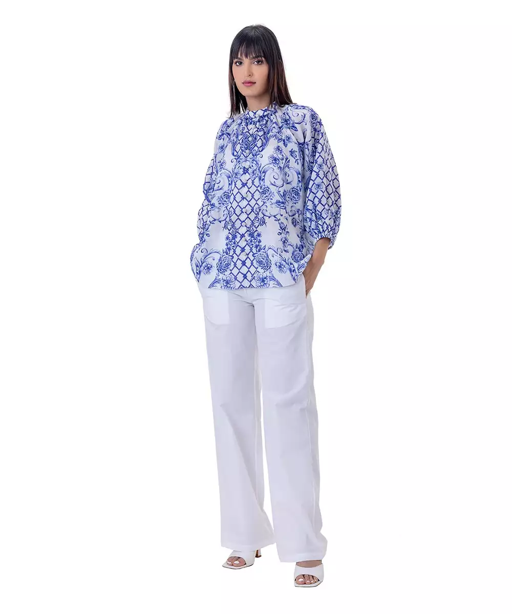 Cream Pure Linen Embroidered Thread Deer Shirt