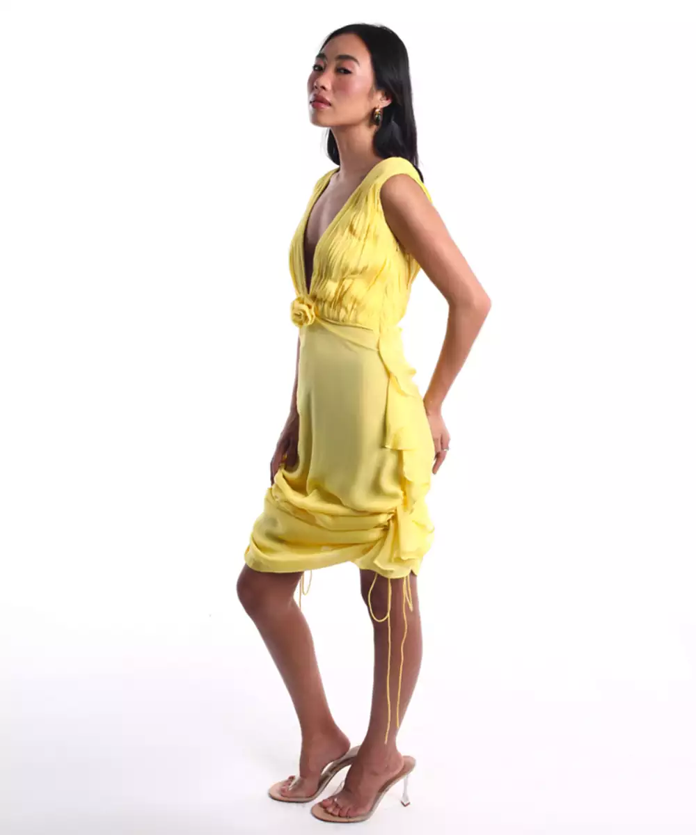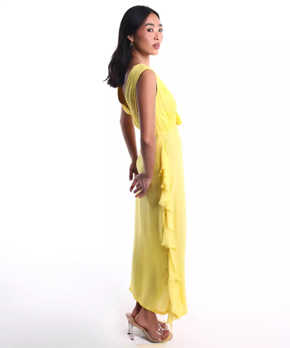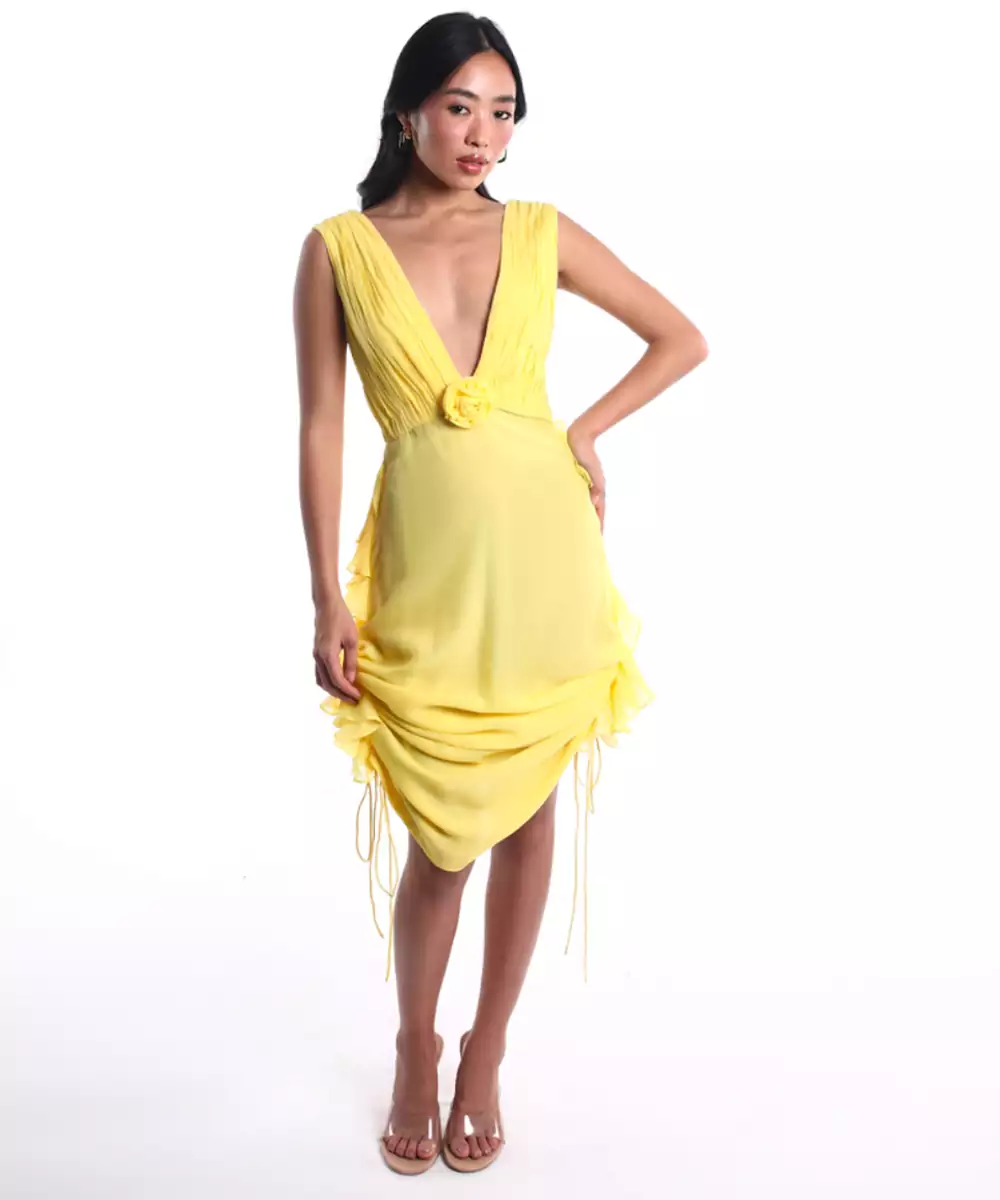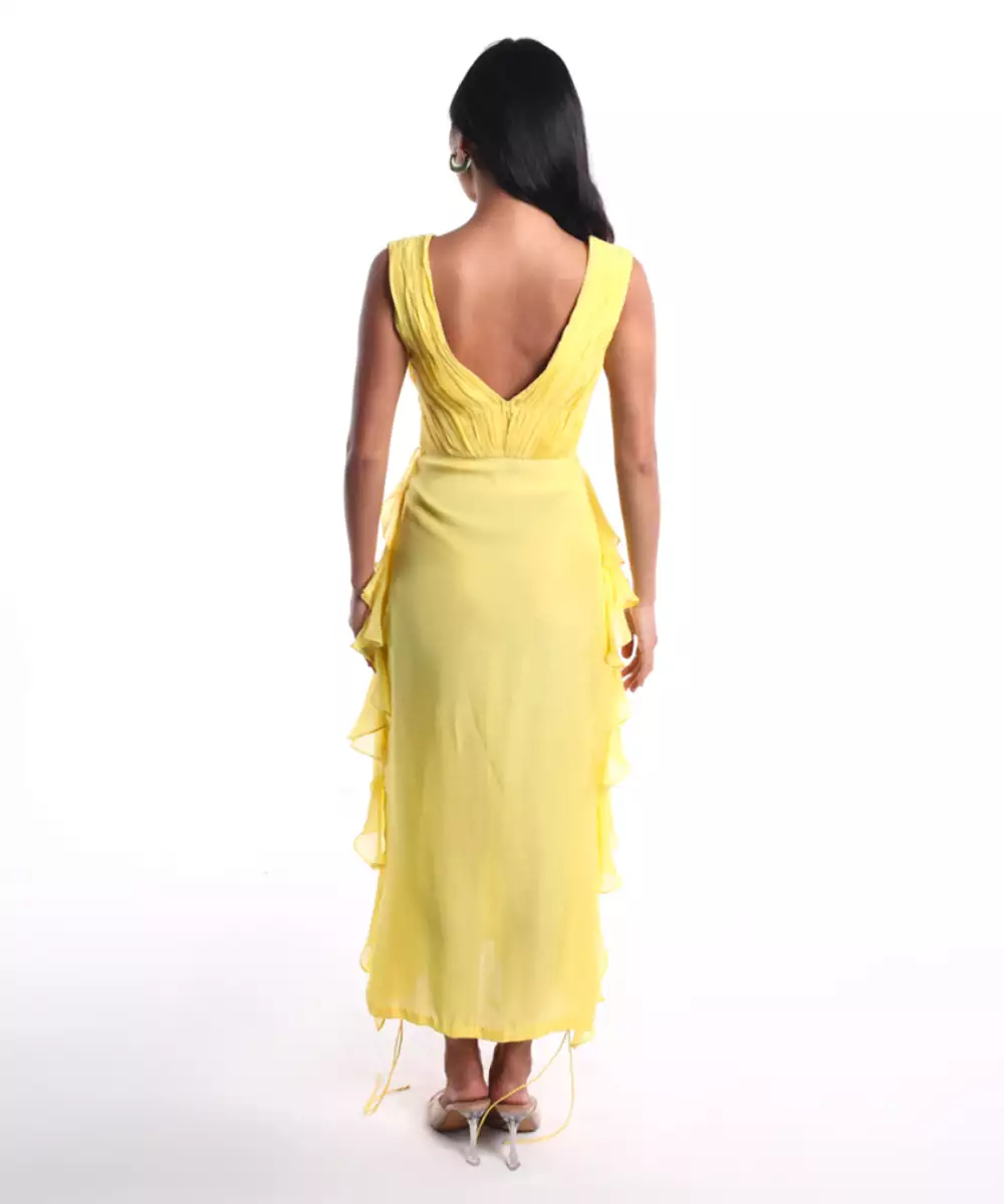 This Yellow Plain Chiffon Dress Radiates Sunshine And Elegance With Its Soft, Flowy Fabric And Vibrant Hue. Crafted From Lightweight Chiffon, It Offers A Comfortable And Airy Feel, Perfect For Warm Days. Ideal For Brunches, Festive Gatherings, Or Casual Outings, It Adds A Cheerful And Graceful Touch To Your Look.