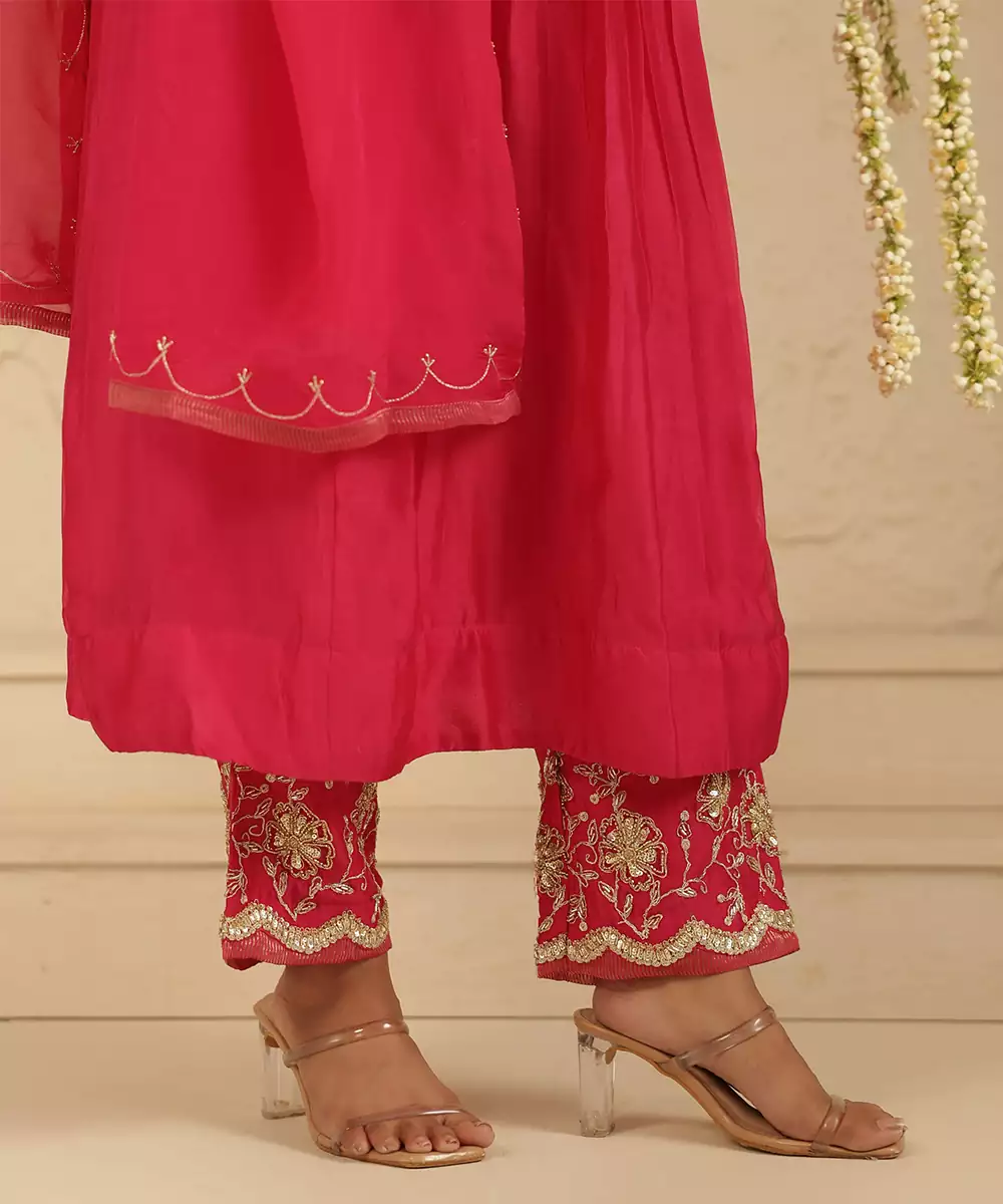 If Sophistication Is Your Vibe. This One Is For You. Kurta And Pants Both Made In Handloom Chanderi With Intricate Hand Embroidery. The Set Comes With An Organza Dupatta.