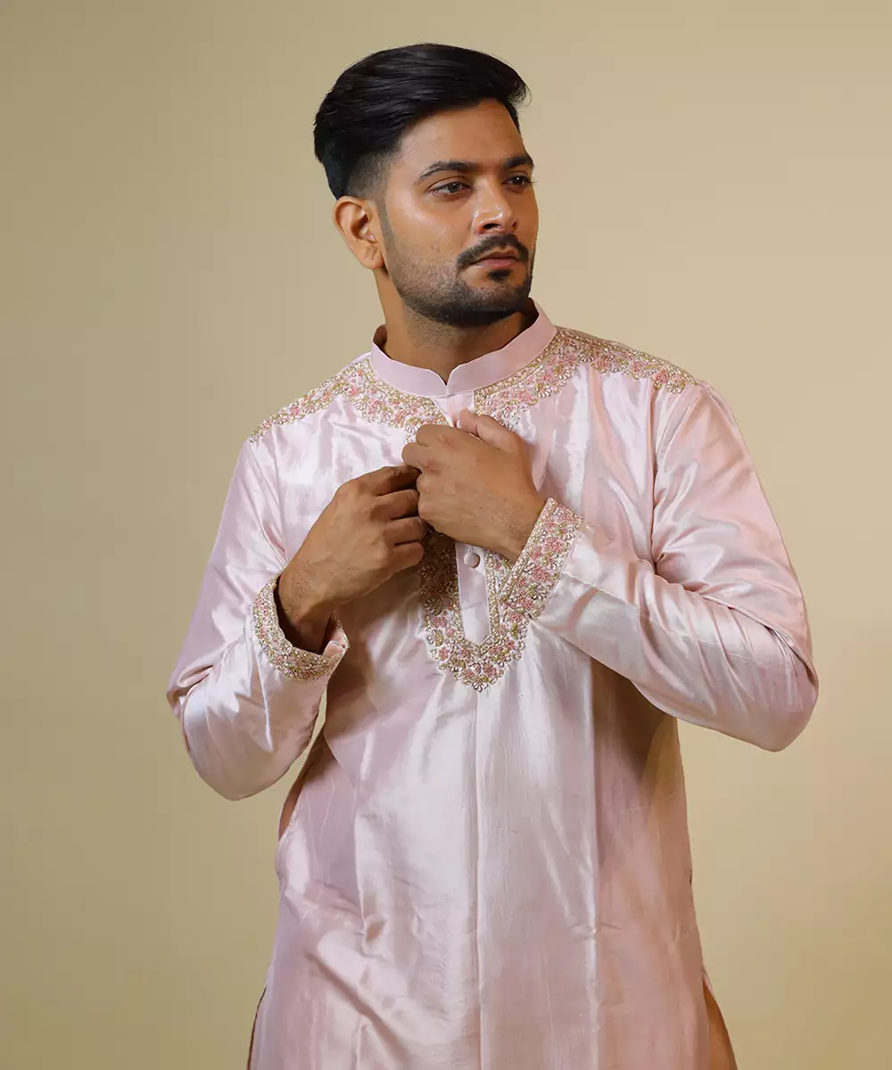 The Kurta Is Best Suited For You, If You Want To Grab A Royal And Elegant Look With Minimum Effort. The Colour Of The Kurta And Lustrous Sheen Provided By The Fabric Looks Very Enchanting. The Intricate Embroidered Design Beautifies The Kurta Even More. Be It A Pre Wedding Ceremony Or Engagement , The Attire Is Just Perfect For Any Traditional Occasions.
