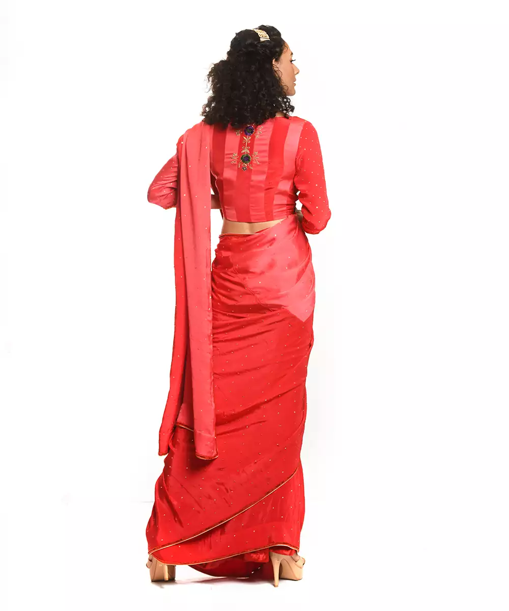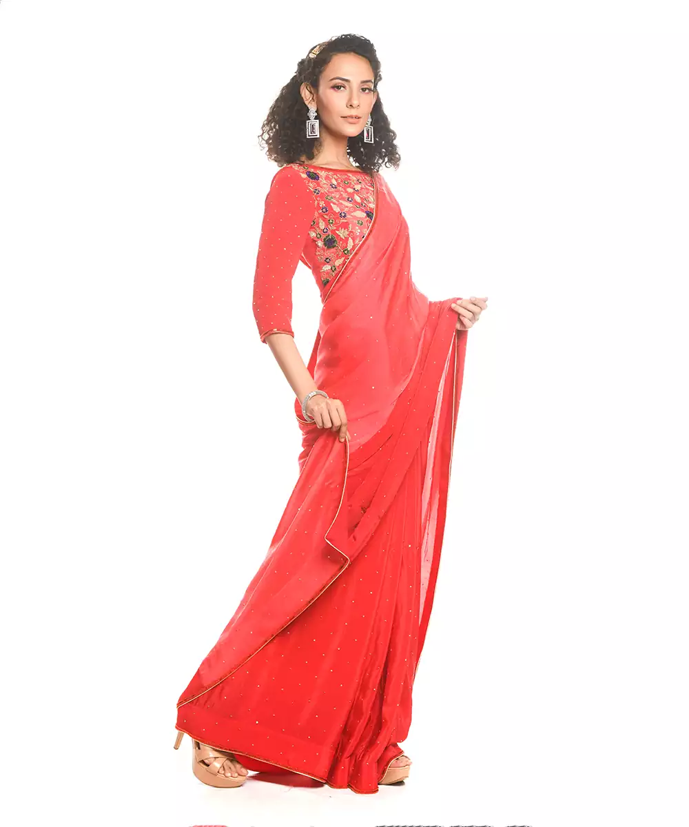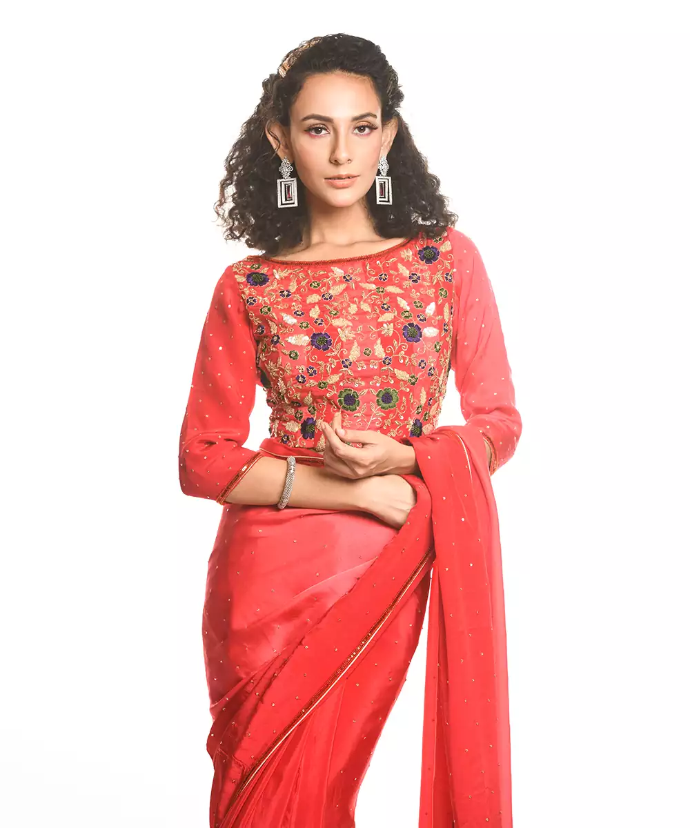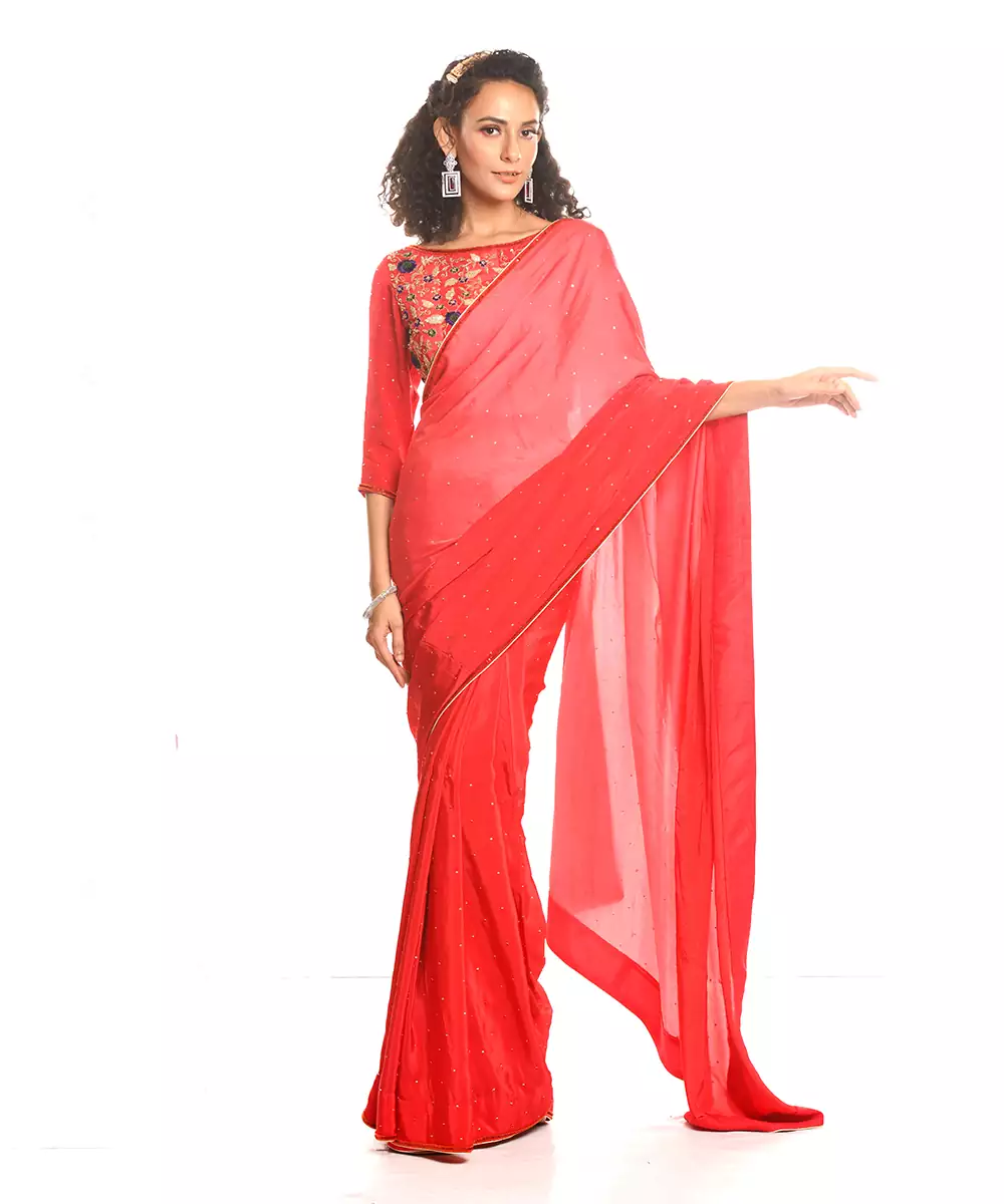 Peach Blouse With Peach And Navy Blue Ombre Saree