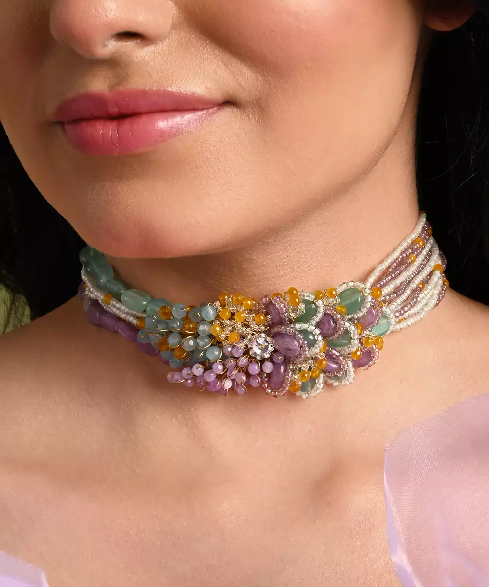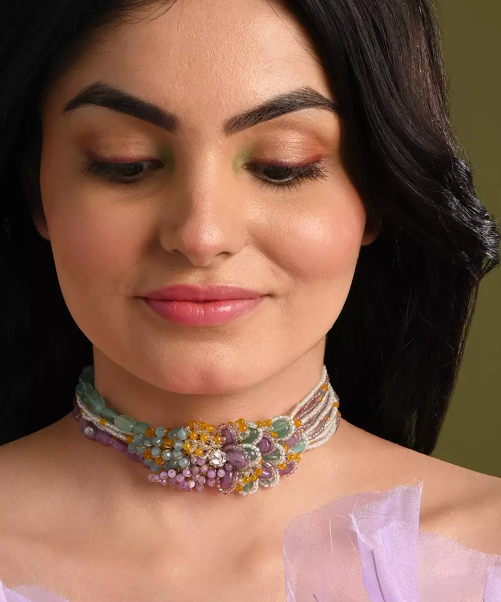 Colourful Stone Neckpiece For Haldi Mehendi Wedding