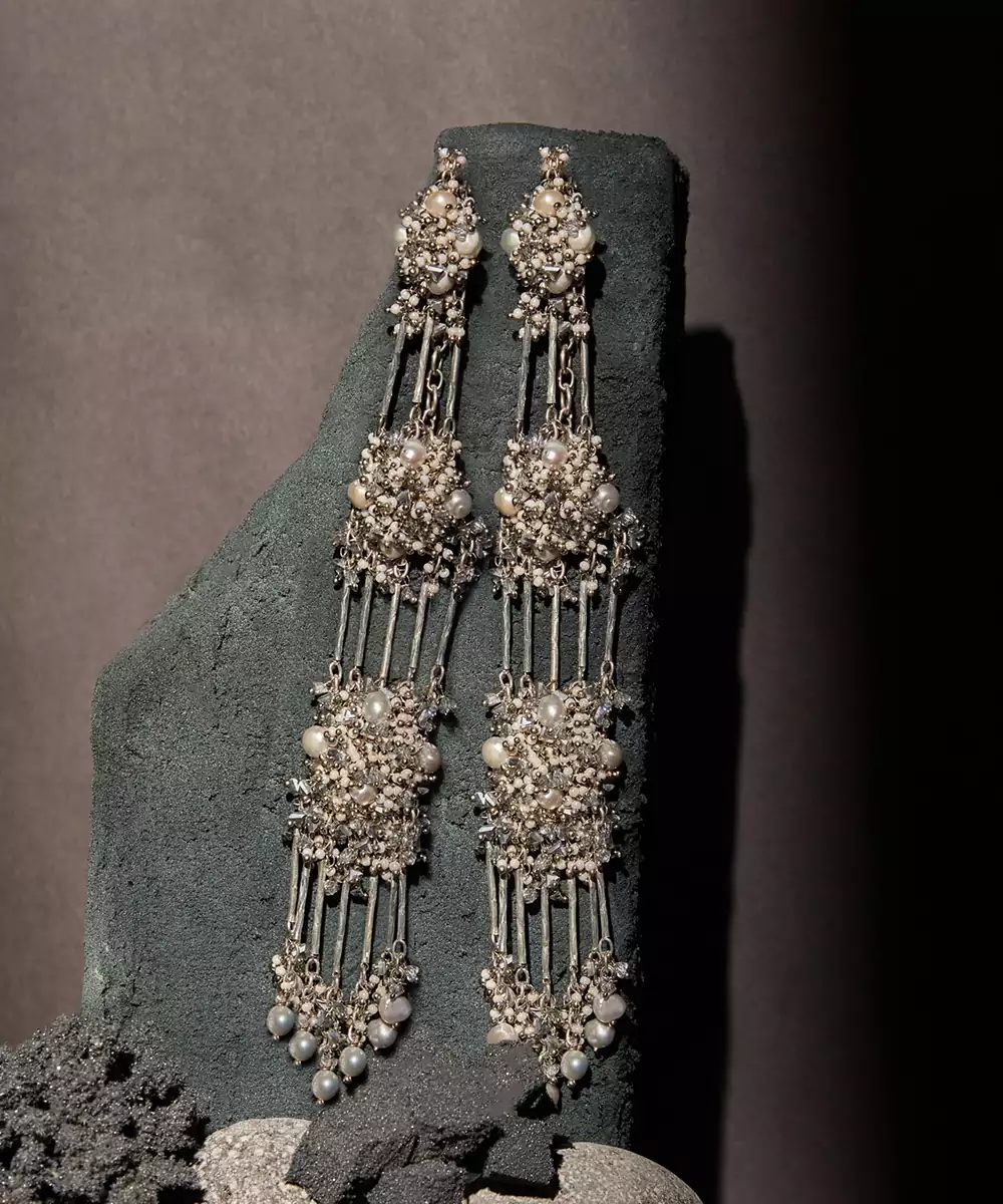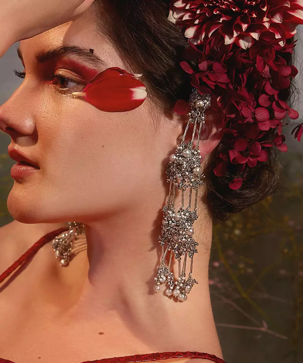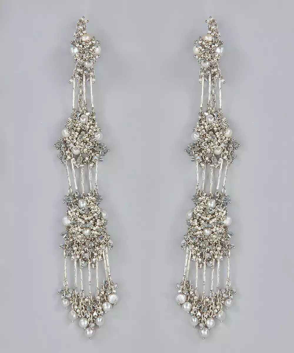 Pair This Beautiful Silver Pair Of Beaded Danglings. With Your Traditional Indian Wear For Any Wedding Ceremony. The Design Goes With Most Evening Outfit Choices.