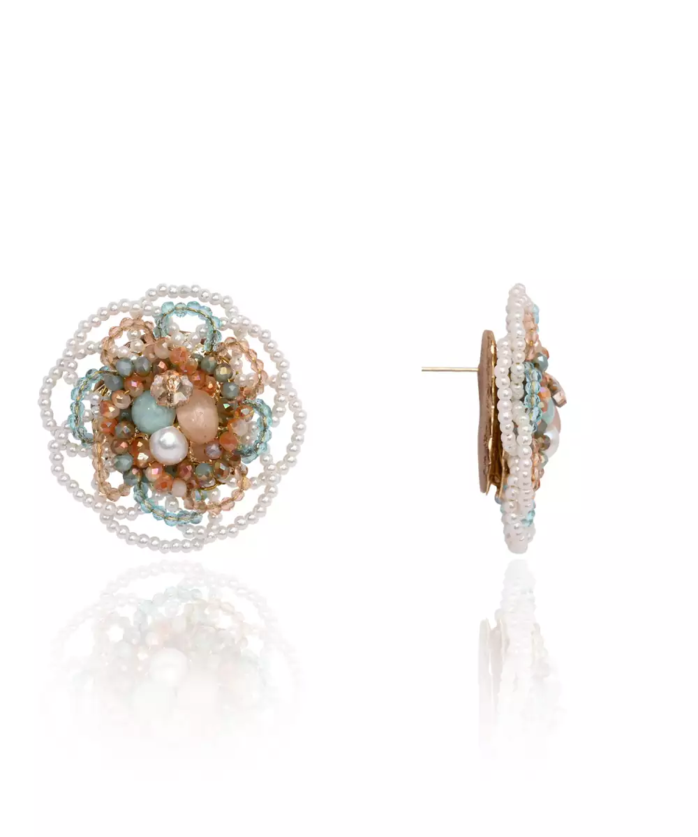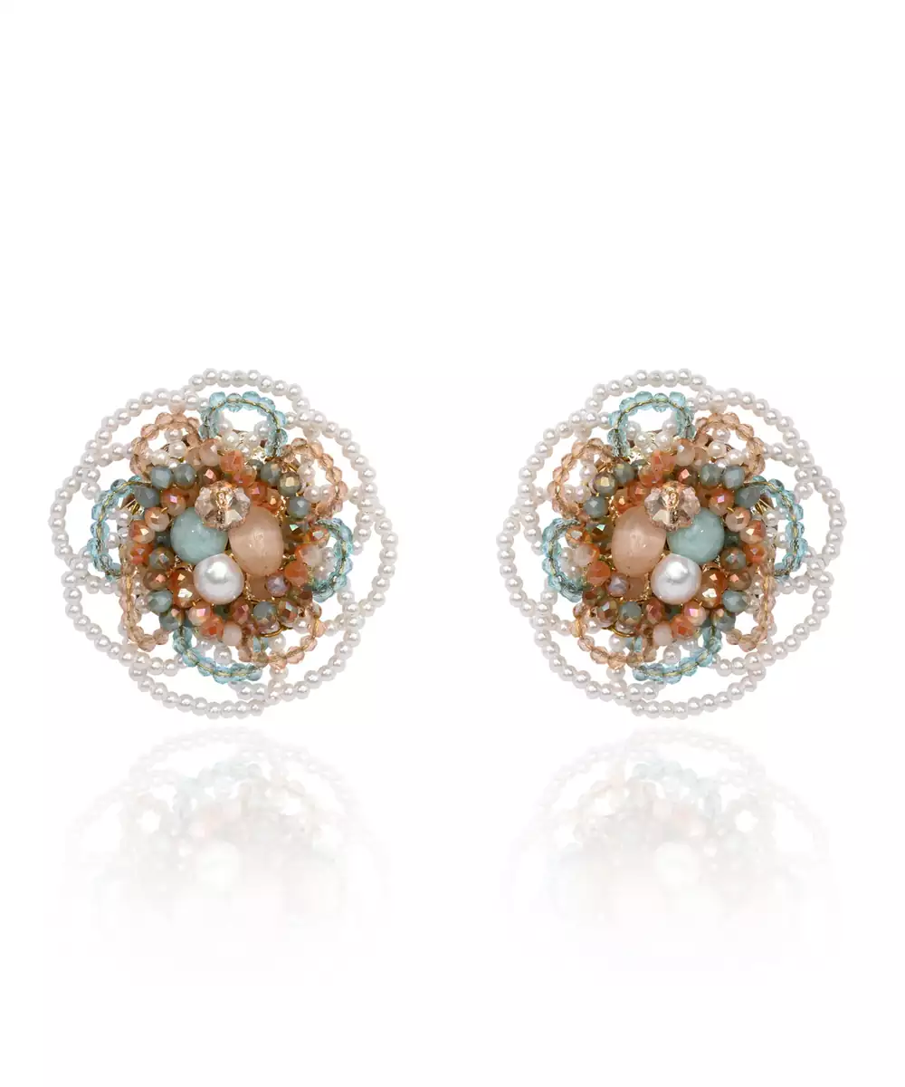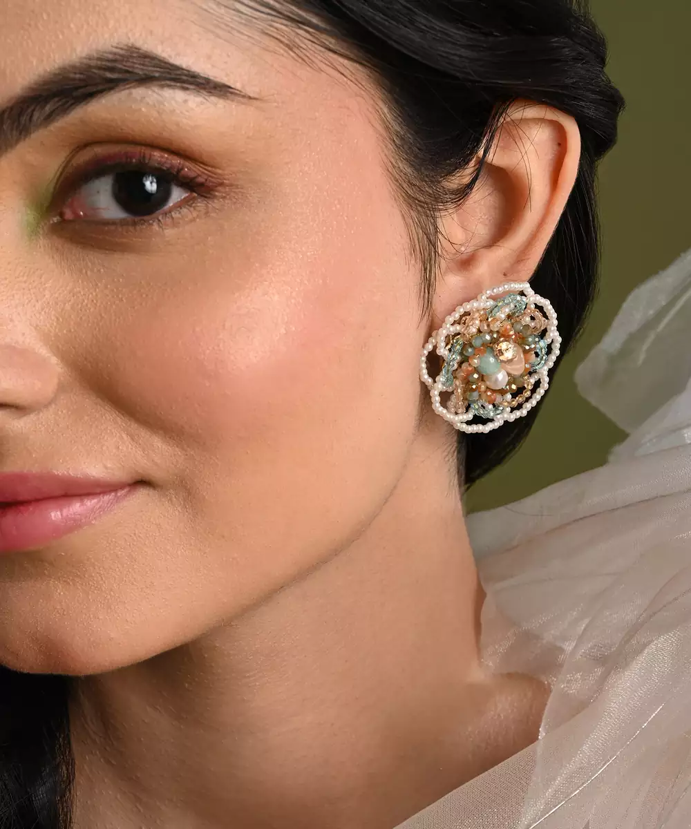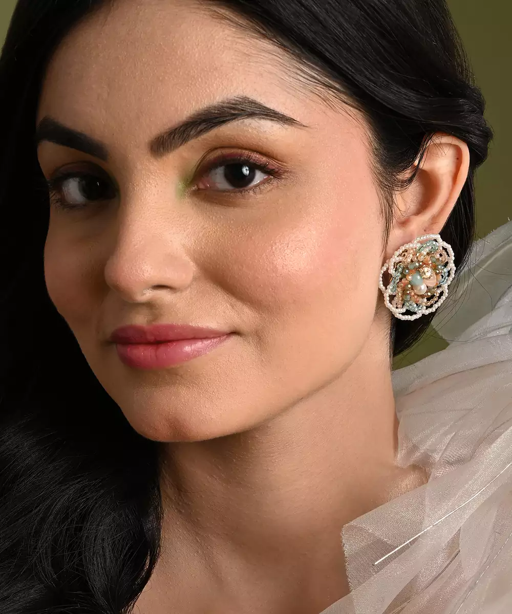 Floral Haldi Mehendi Colourful Stone Crystal Earrings
