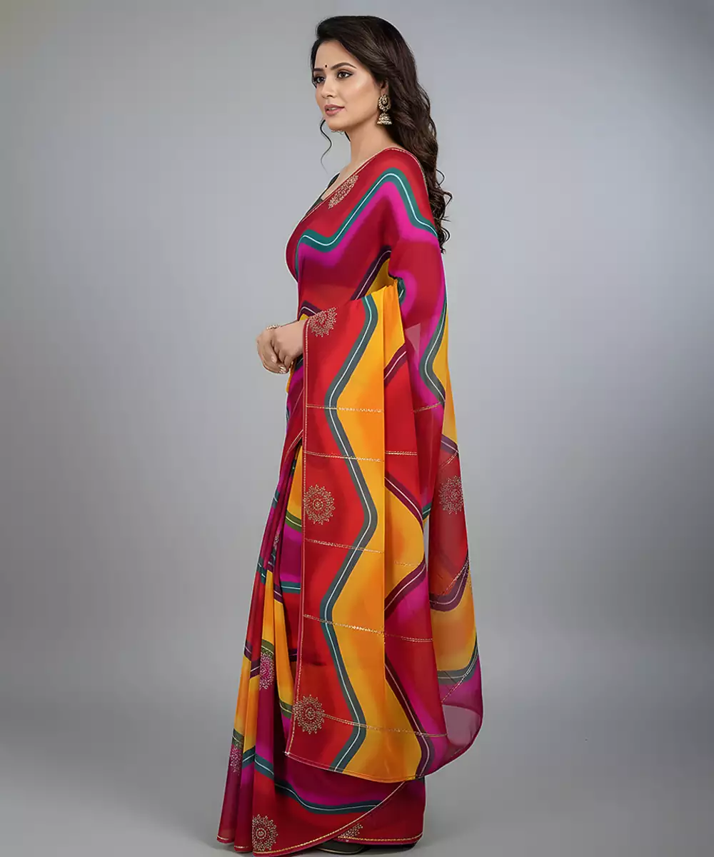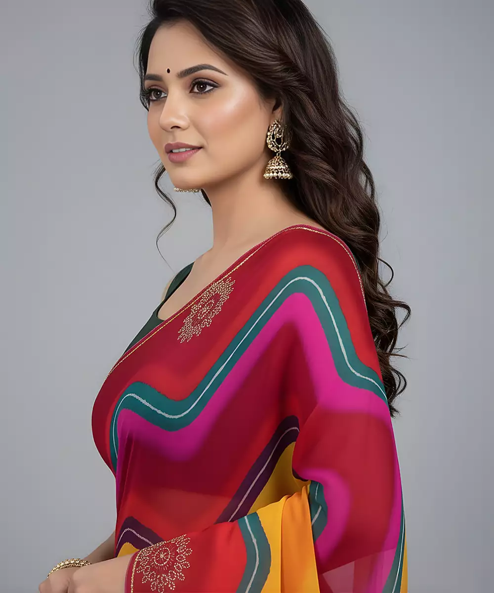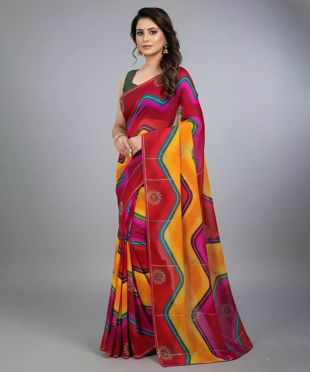 Multicolor Embroidered Viscose Saree Featuring A Smooth, Fluid Drape And Vibrant Color Palette. Adorned With Intricate Embroidery That Adds Elegance And Festive Charm. Lightweight And Comfortable, This Saree Is Ideal For Celebrations, Festive Occasions, And Evening Wear, Beautifully Blending Traditional Artistry With Contemporary Style.