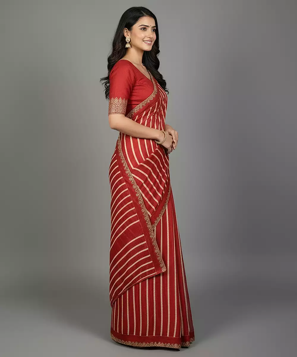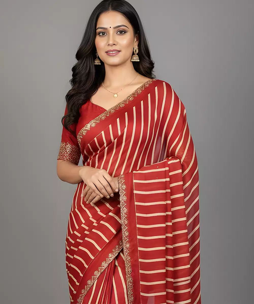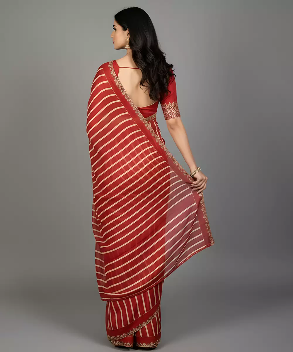 Red Embroidered Silk Saree Crafted With A Rich, Lustrous Texture And Graceful Drape. Highlighted With Intricate Embroidery That Adds Timeless Elegance And Charm. Perfect For Weddings, Festive Occasions, And Celebrations, This Saree Beautifully Enhances Traditional And Ethnic Ensembles With A Regal, Sophisticated Appeal.