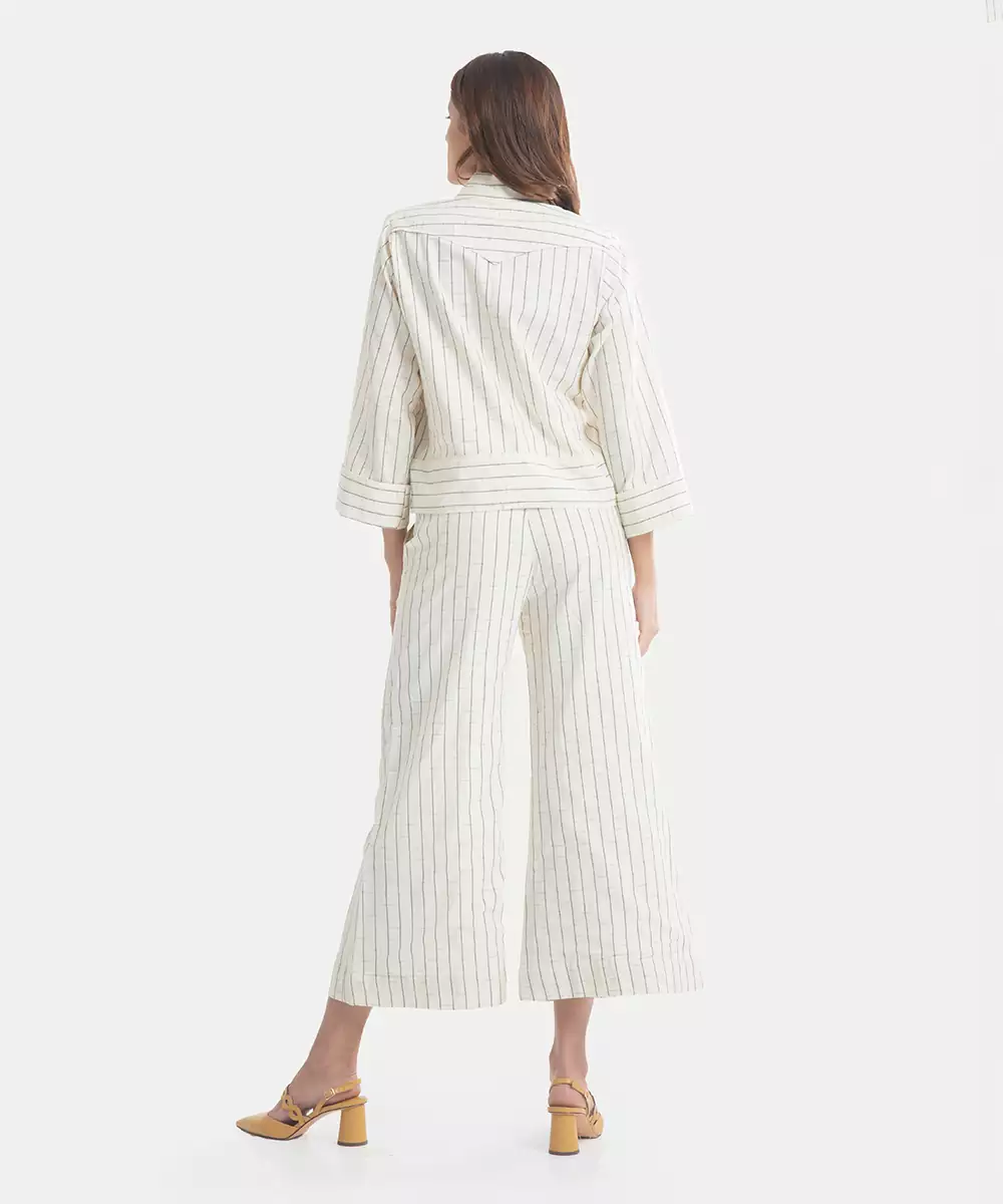 Louis Rosette Co Rd Set Is Crafted From Airy Rayon Fabric, This Set Of Jacket And Bell Bottoms Is Adorned With Embroidered Rosette Motif Buttons. The Jacket Is Highlighted With Rosette Embroidered Button On Front Lapel Perfectly Clubbed With A Flattering Shirt Collor Neckline, While The Pants Sit Comfortably At The Waist As They Fall Into A Bell Bottom Style.