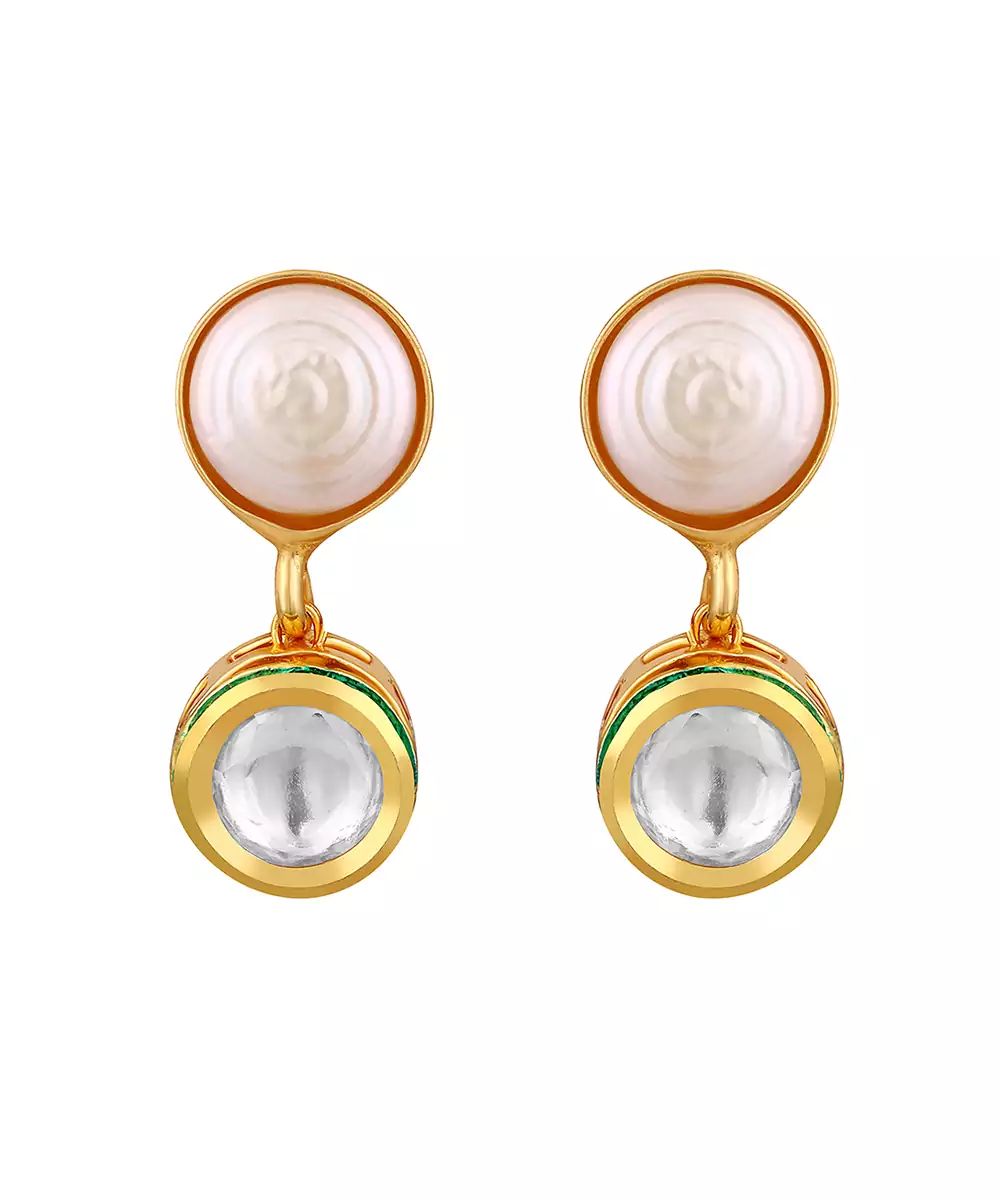 Agates, Baroque Pearls Micron Gold Polis Brass Necklace Set Color : Gold Materials : Micron Gold Polish Brass, Kundan Polki, Pearls Components : 1 Necklace / 1 Pair Of Earring