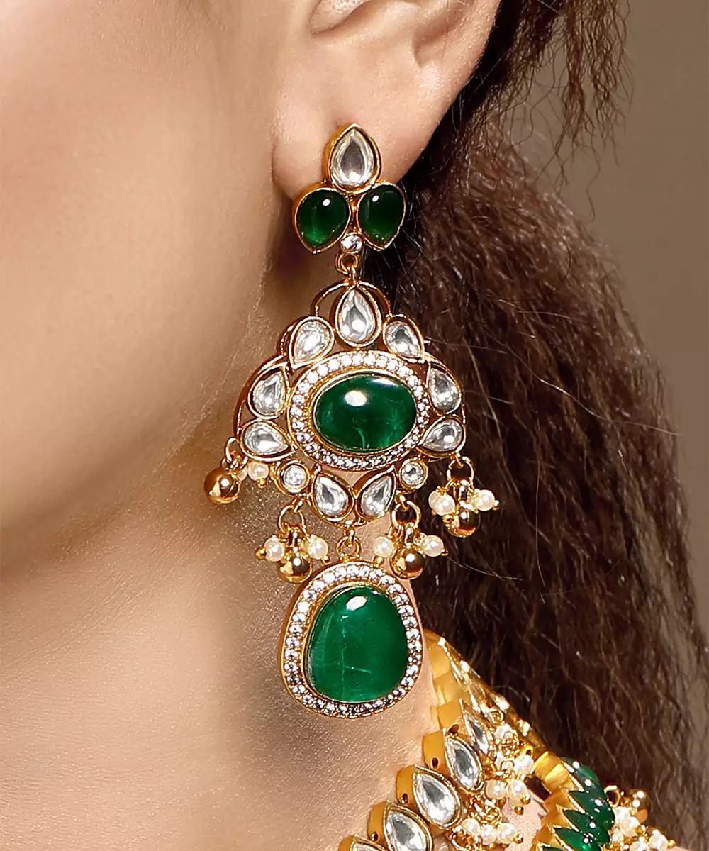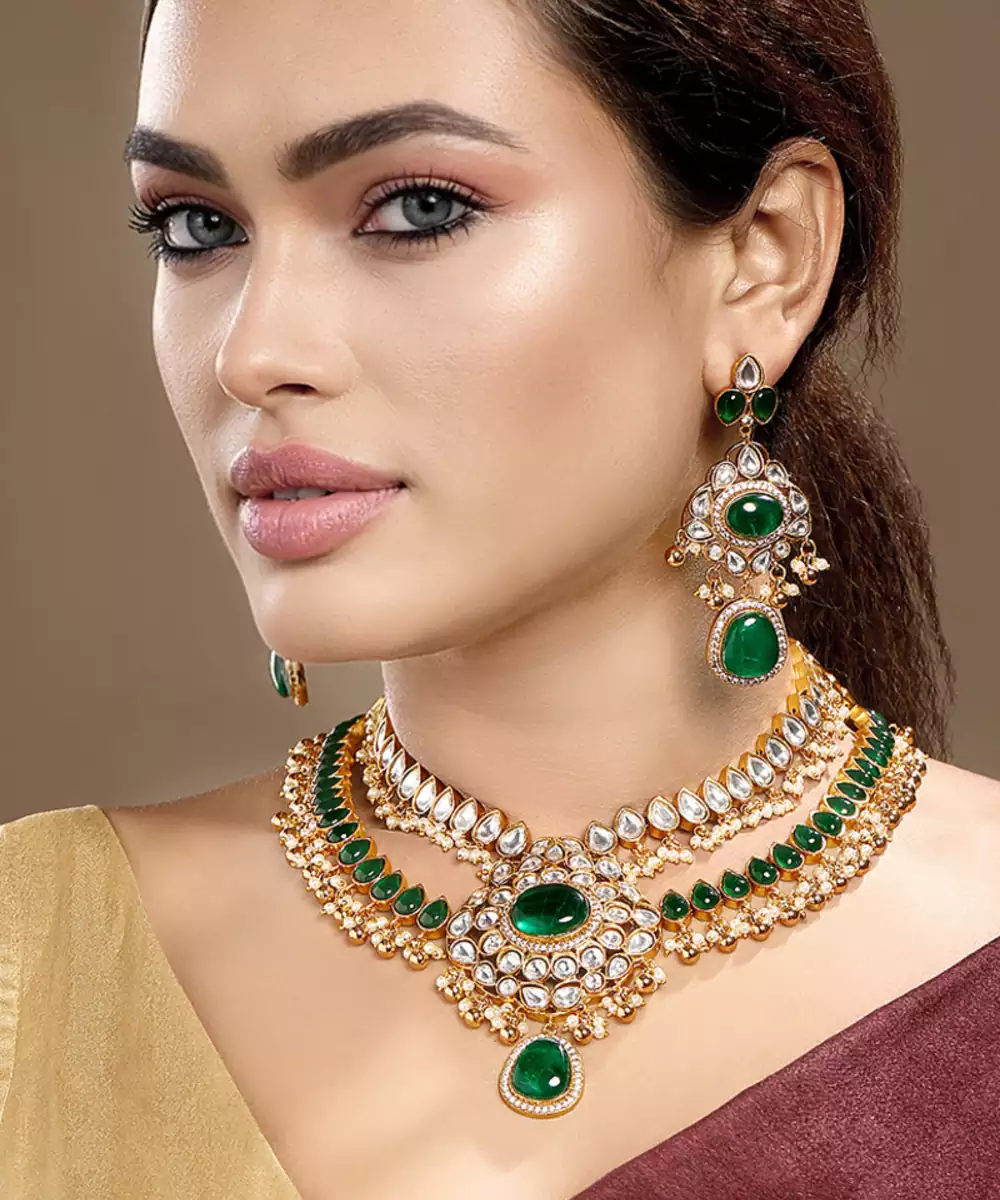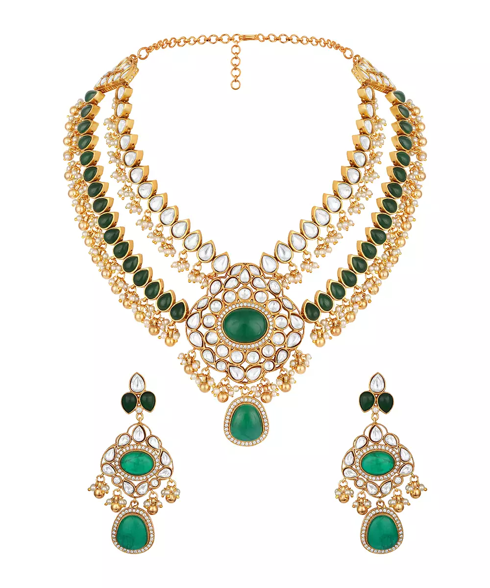 Enhance Your Traditional Look With This Gold Plated Kundan Necklace Set. Beautifully Crafted With Intricate Detailing, It Reflects Timeless Elegance And Classic Artistry. Perfect For Weddings, Festive Celebrations, Or Special Occasions, This Exquisite Set Adds A Regal Charm And Sophisticated Appeal To Any Ethnic Outfit.