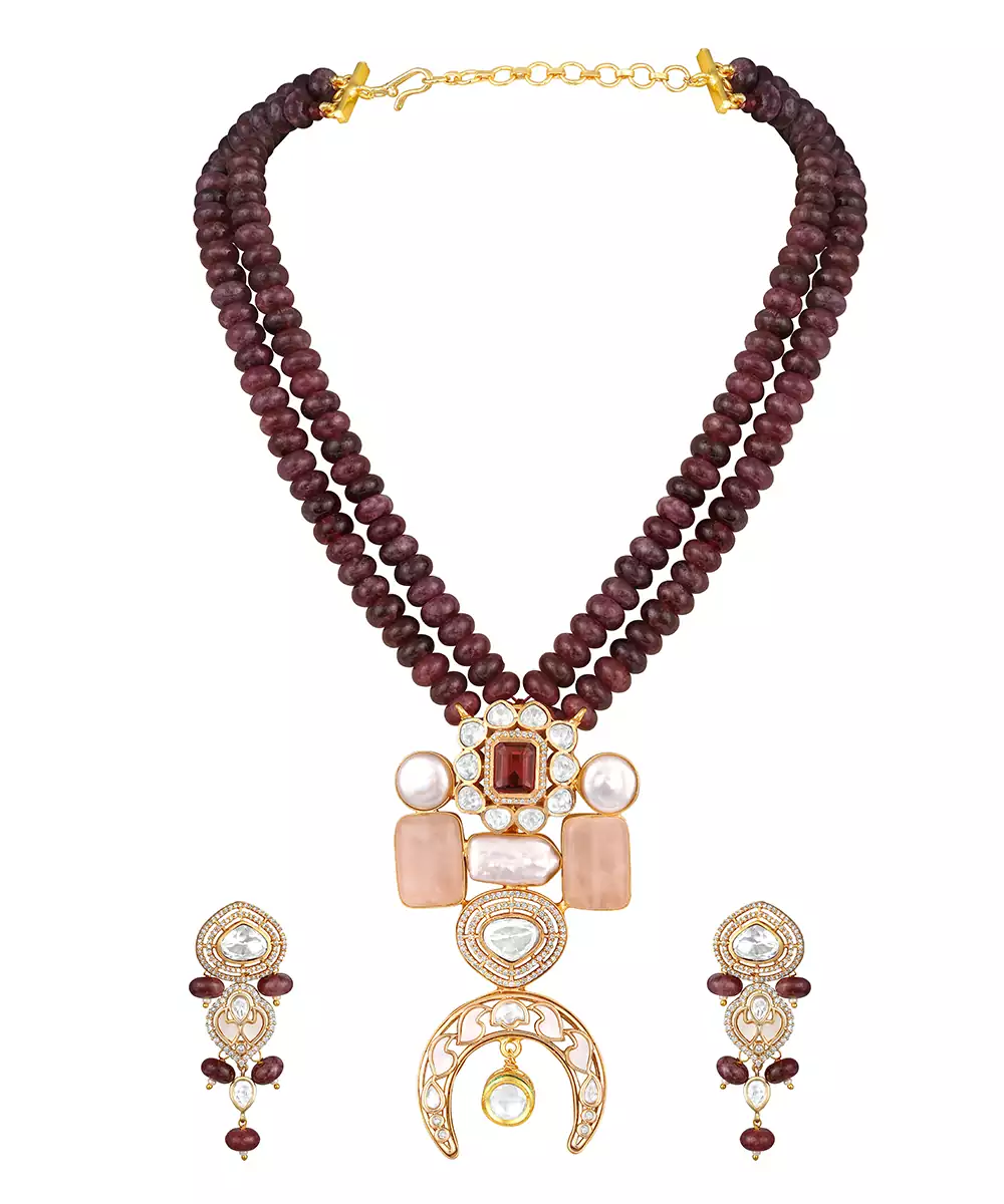 Elevate Your Elegance With This Gold Plated Kundan Multicolor Stones Necklace Set. Designed With Intricate Craftsmanship, It Features Radiant Multicolor Stones Set In Traditional Kundan Style. Perfect For Weddings, Festive Occasions, Or Special Celebrations, This Timeless Set Adds Regal Charm And Graceful Sophistication To Any Ethnic Ensemble.