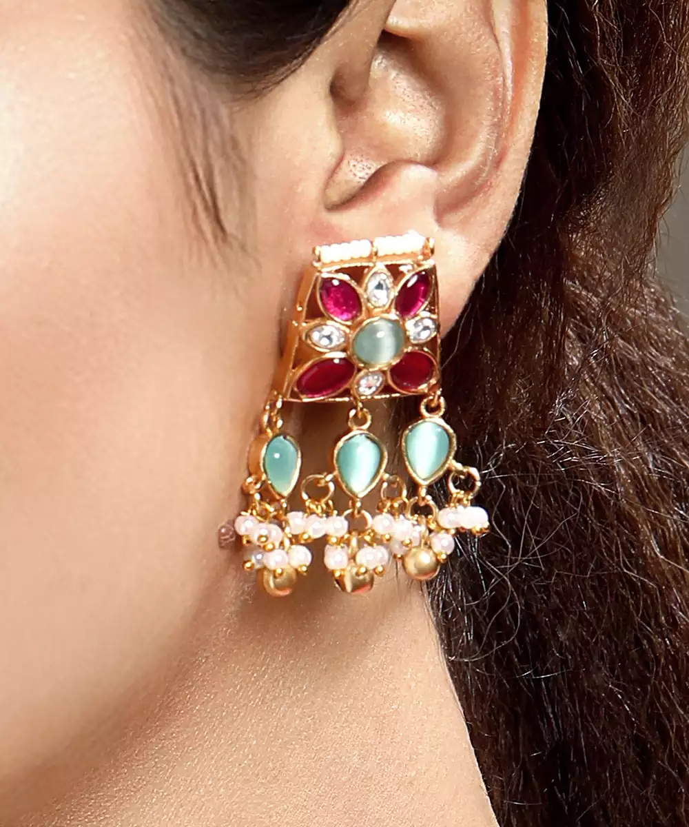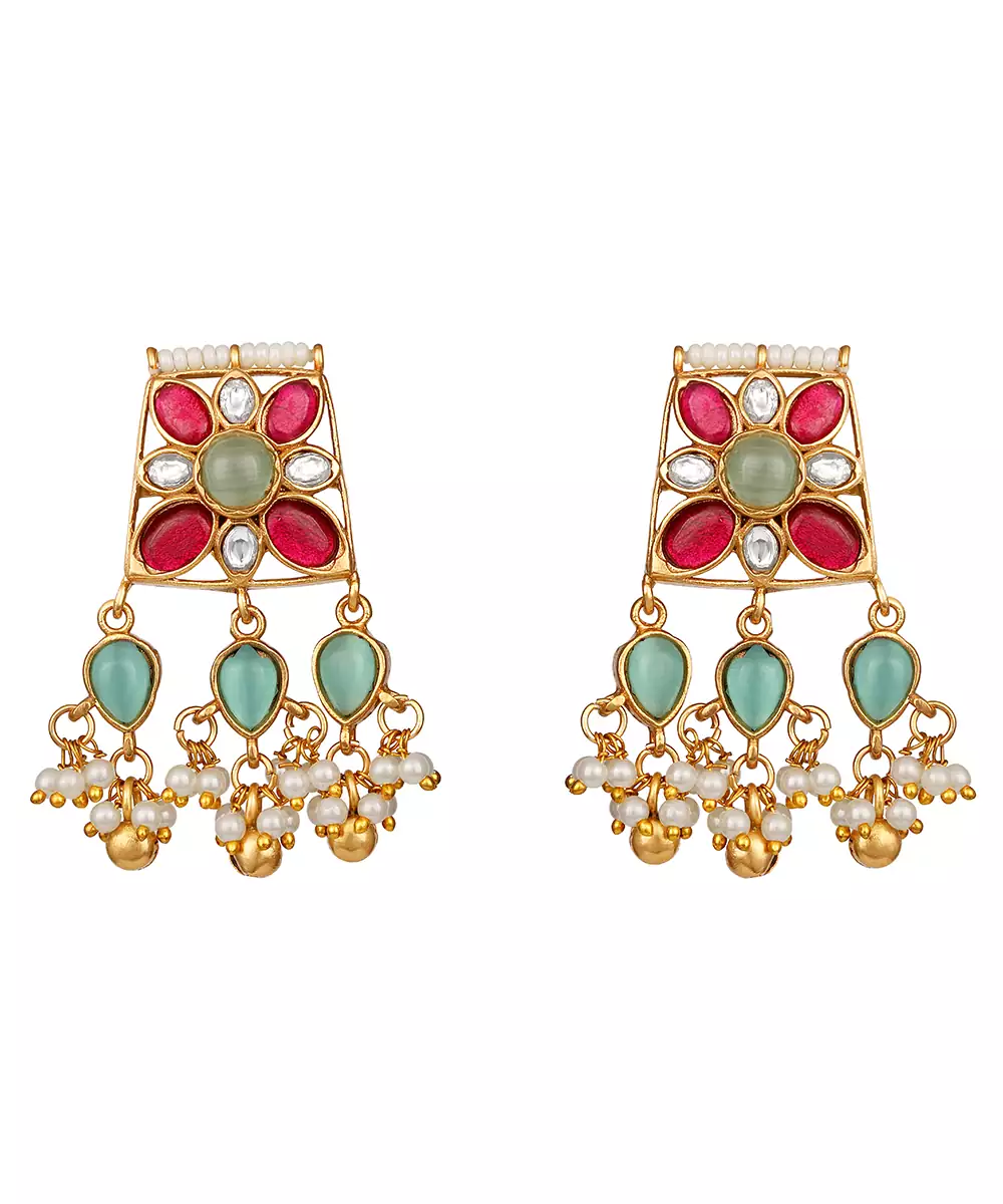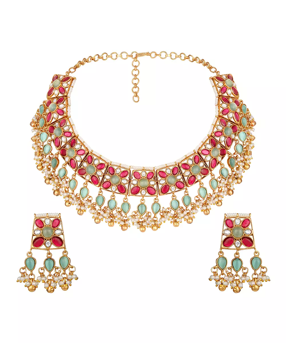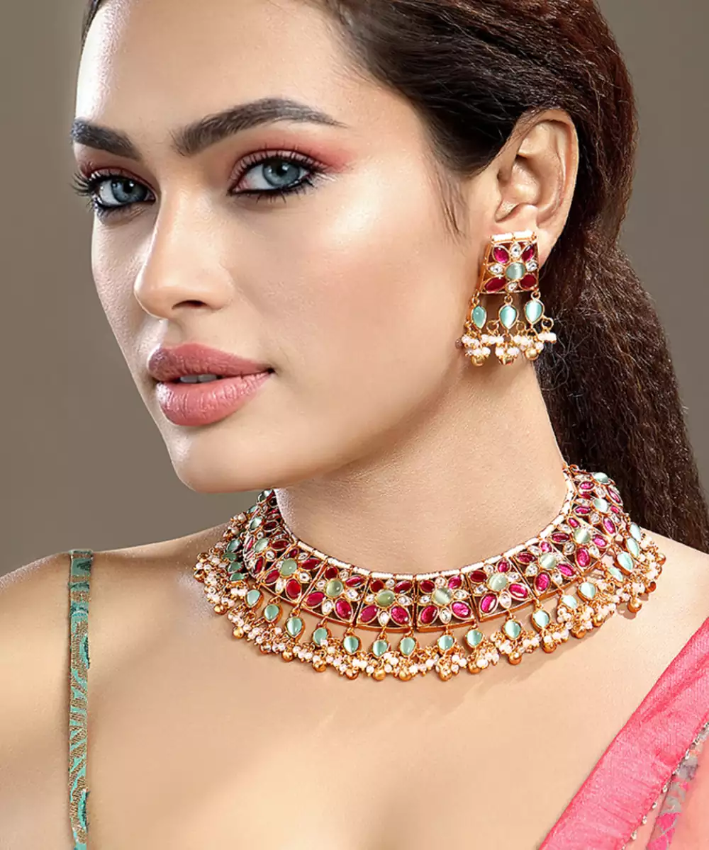 Elevate Your Elegance With This Gold Plated Kundan Multicolor Stones Necklace Set. Designed With Intricate Craftsmanship, It Features Radiant Multicolor Stones Set In Traditional Kundan Style. Perfect For Weddings, Festive Occasions, Or Special Celebrations, This Timeless Set Adds Regal Charm And Graceful Sophistication To Any Ethnic Ensemble.