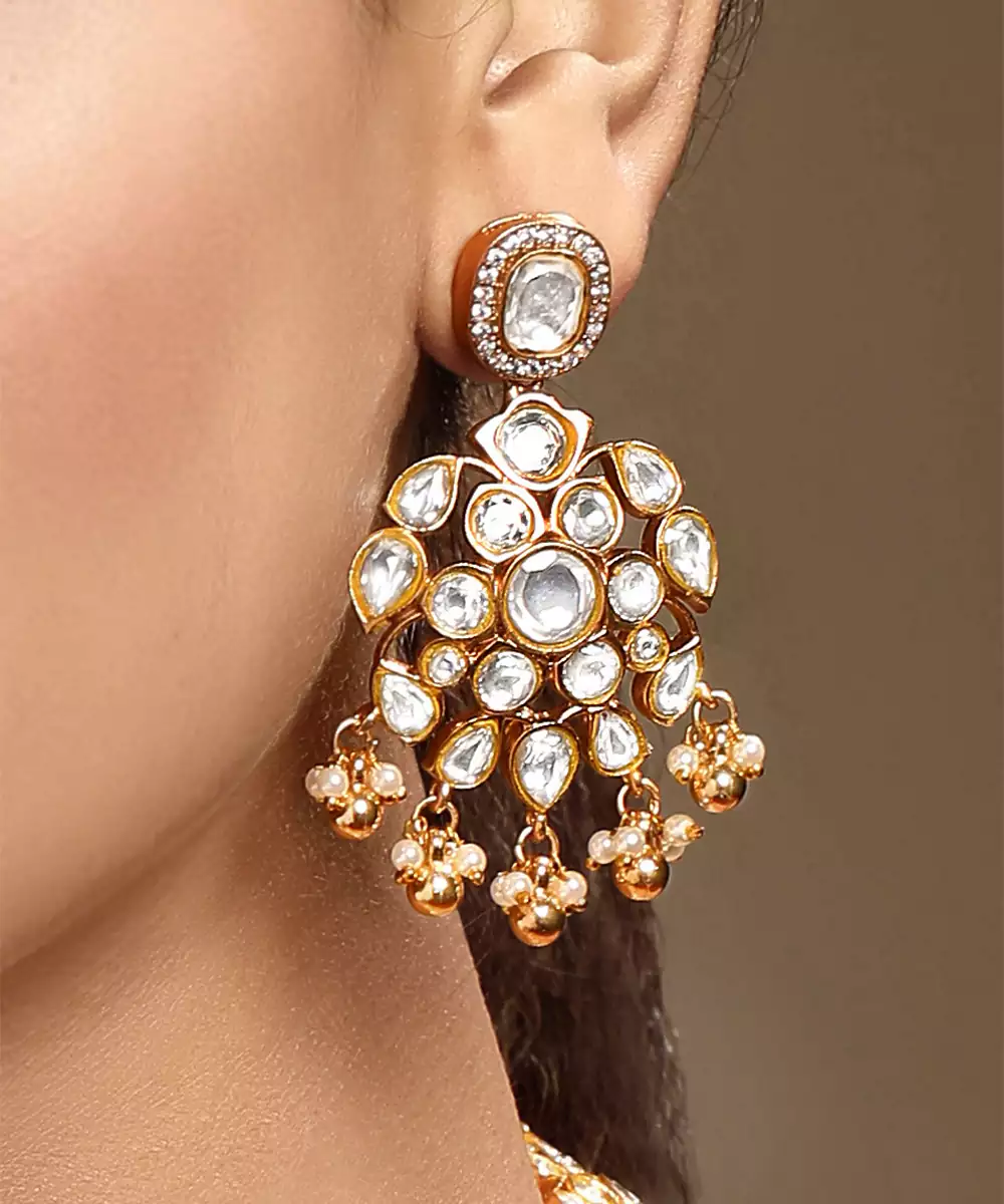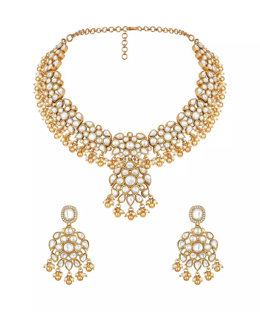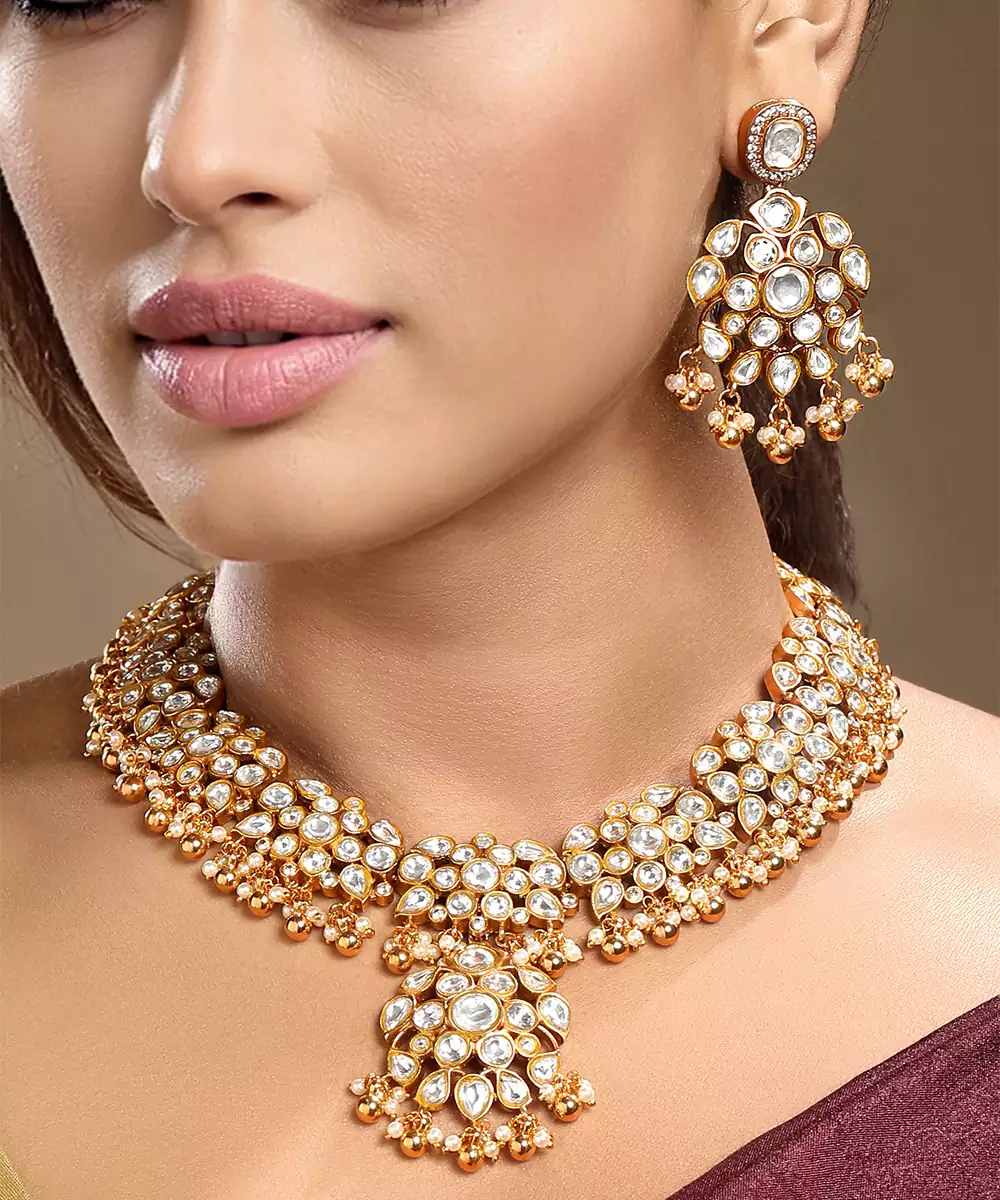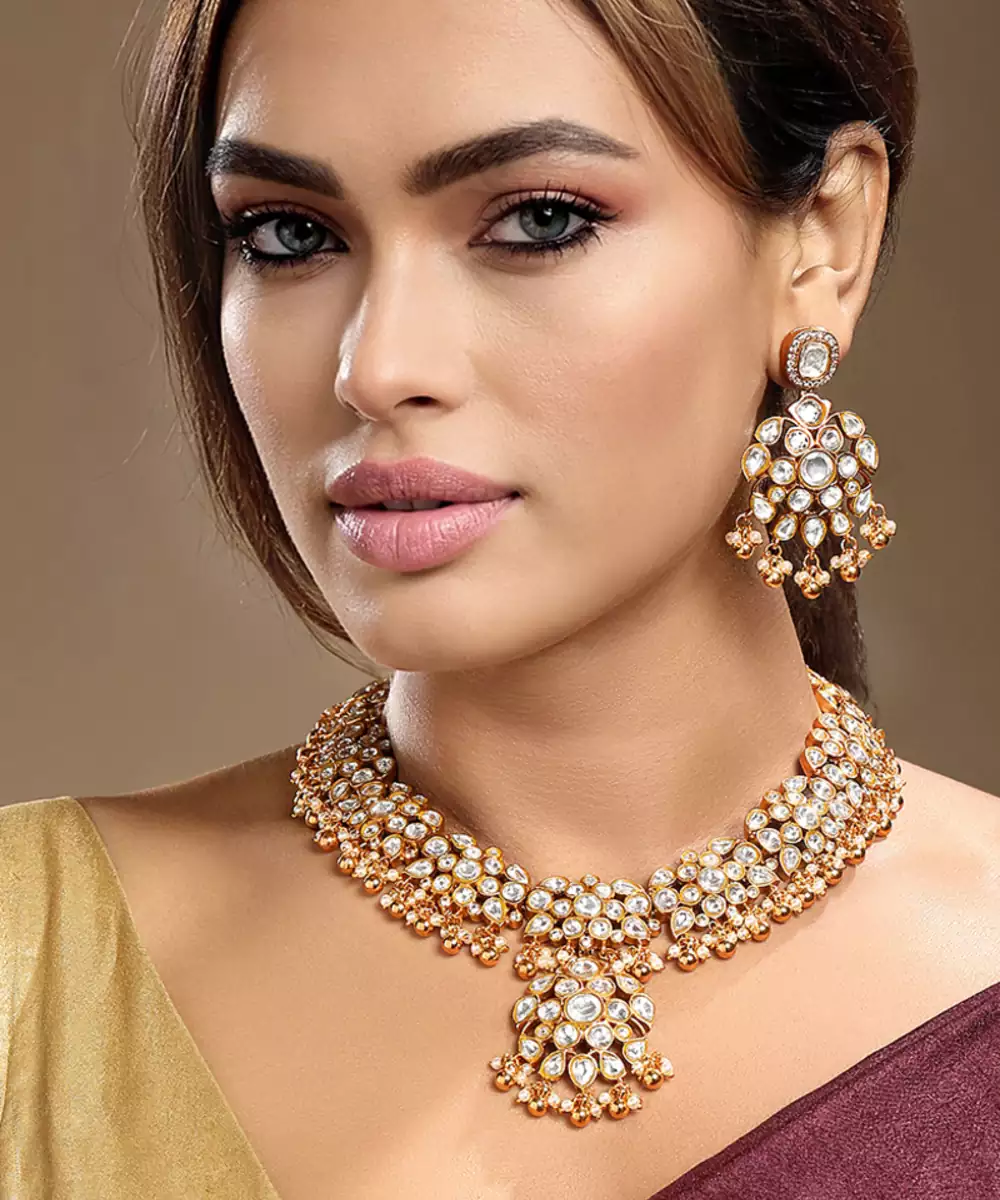 Enhance Your Traditional Look With This Gold Plated Kundan Necklace Set. Beautifully Crafted With Intricate Detailing, It Reflects Timeless Elegance And Classic Artistry. Perfect For Weddings, Festive Celebrations, Or Special Occasions, This Exquisite Set Adds A Regal Charm And Sophisticated Appeal To Any Ethnic Outfit.