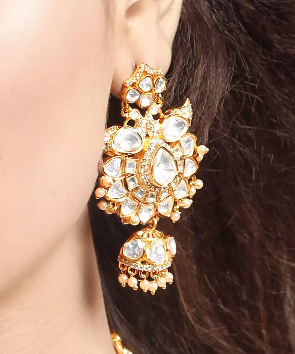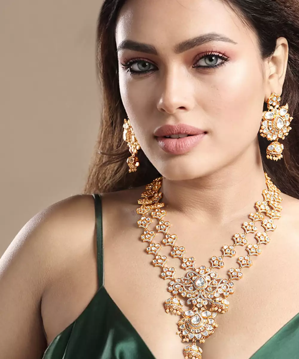 Enhance Your Traditional Look With This Gold Plated Kundan Necklace Set. Beautifully Crafted With Intricate Detailing, It Reflects Timeless Elegance And Classic Artistry. Perfect For Weddings, Festive Celebrations, Or Special Occasions, This Exquisite Set Adds A Regal Charm And Sophisticated Appeal To Any Ethnic Outfit.