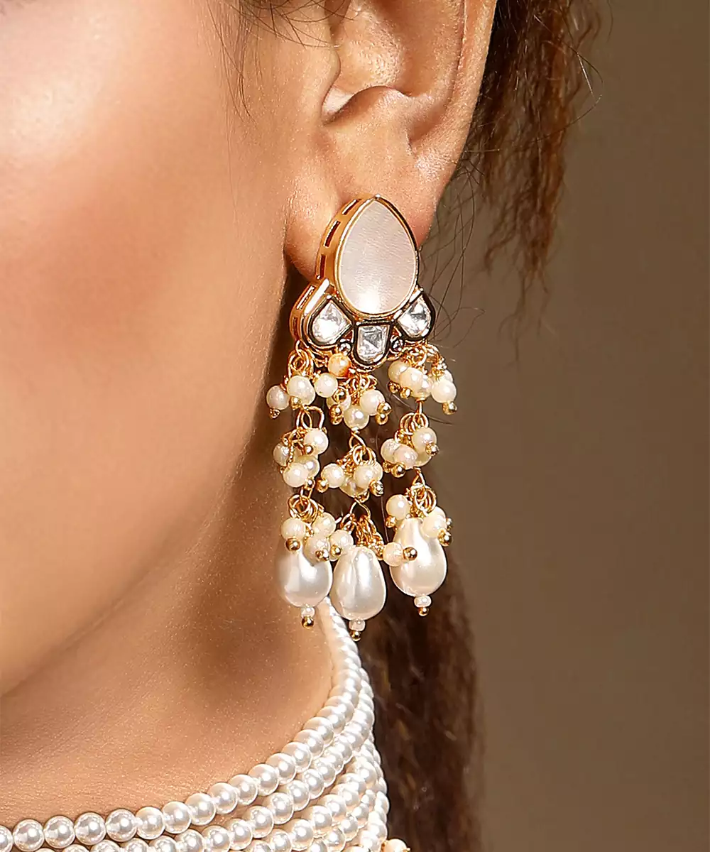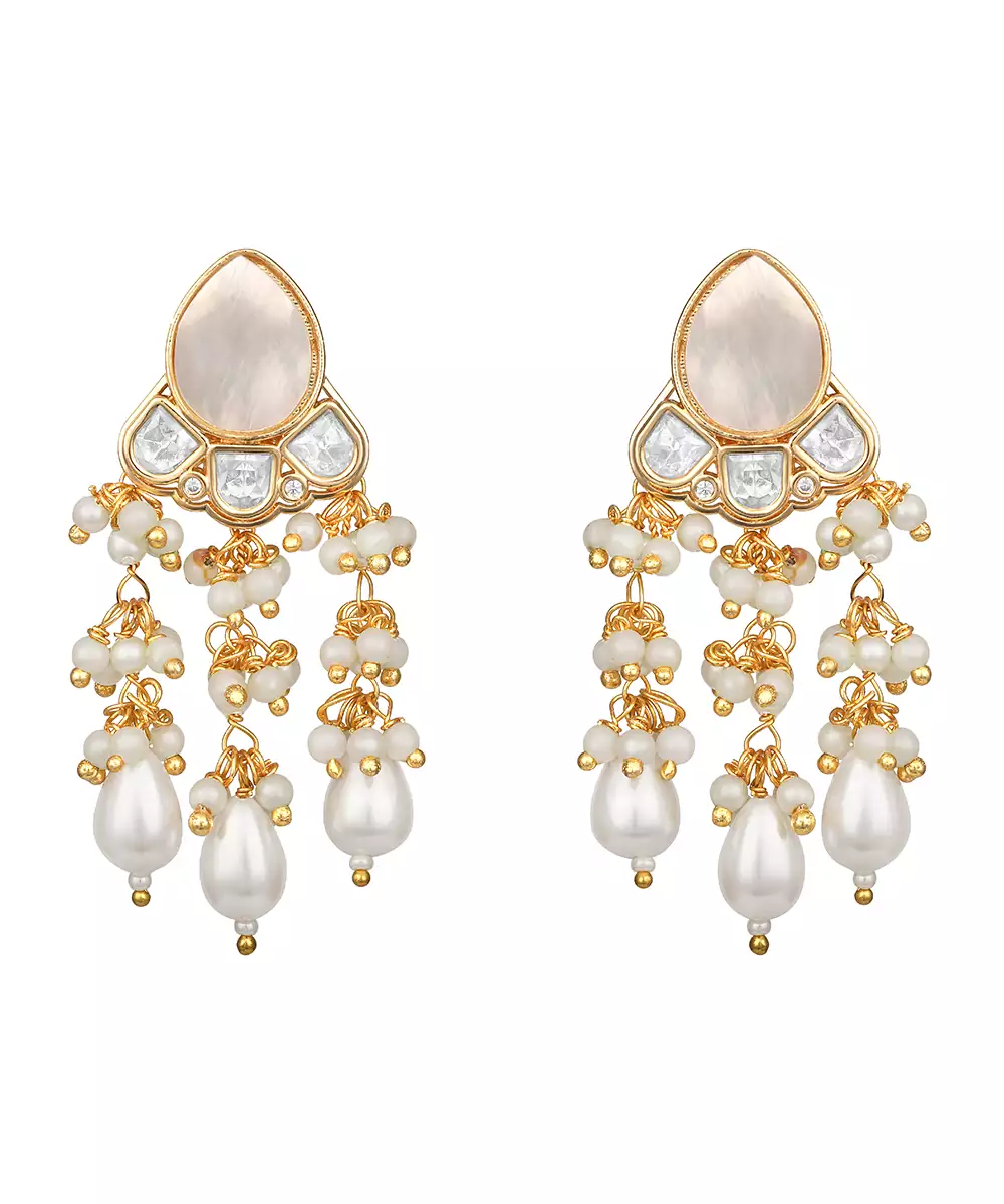 Add A Touch Of Elegance To Your Festive Look With These Gold Plated Kundan Pink Stones Dangler Earrings. Crafted With Intricate Detailing And Soft Pink Stones, They Reflect Timeless Kundan Artistry. Perfect For Weddings, Celebrations, Or Special Occasions, These Graceful Danglers Enhance Ethnic And Fusion Outfits With Refined Charm.