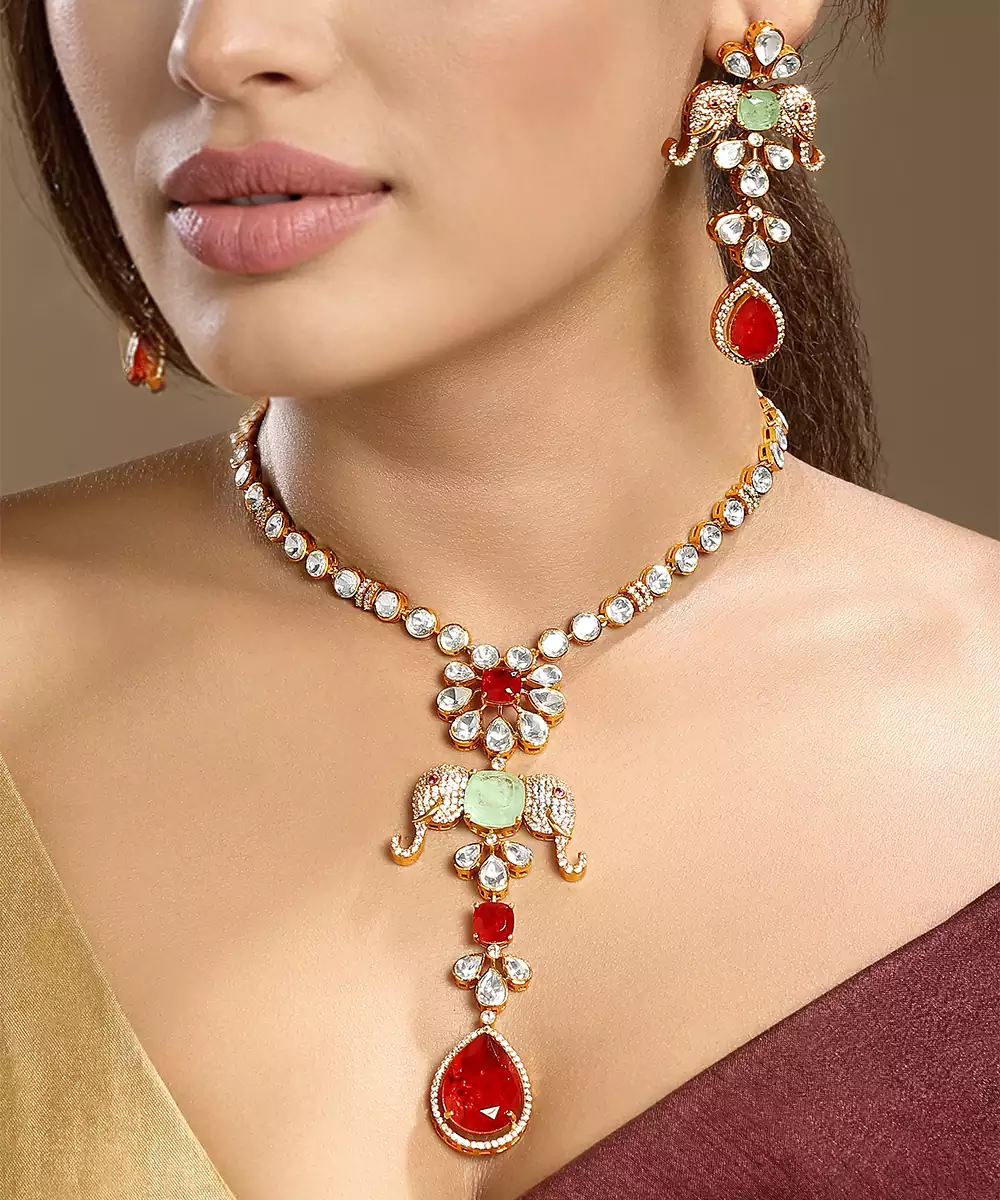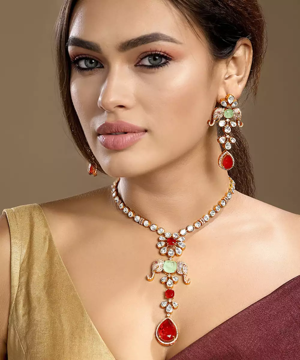 Enhance Your Traditional Look With This Gold Plated Kundan Red Stones Necklace. Crafted With Intricate Detailing, It Features Striking Red Stones Set In Classic Kundan Artistry. Perfect For Festive Occasions, Weddings, Or Evening Events, This Elegant Necklace Adds A Touch Of Royal Charm And Timeless Sophistication.