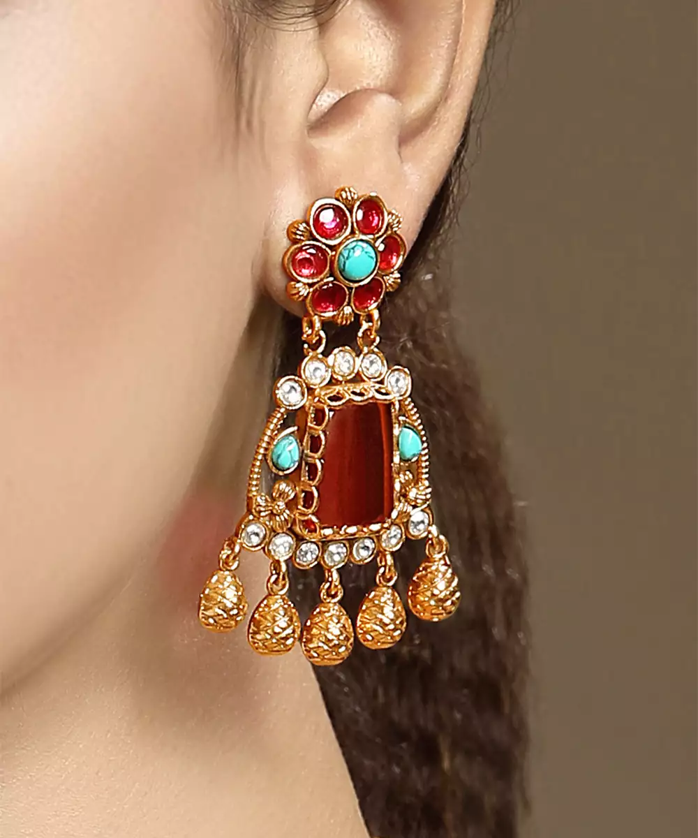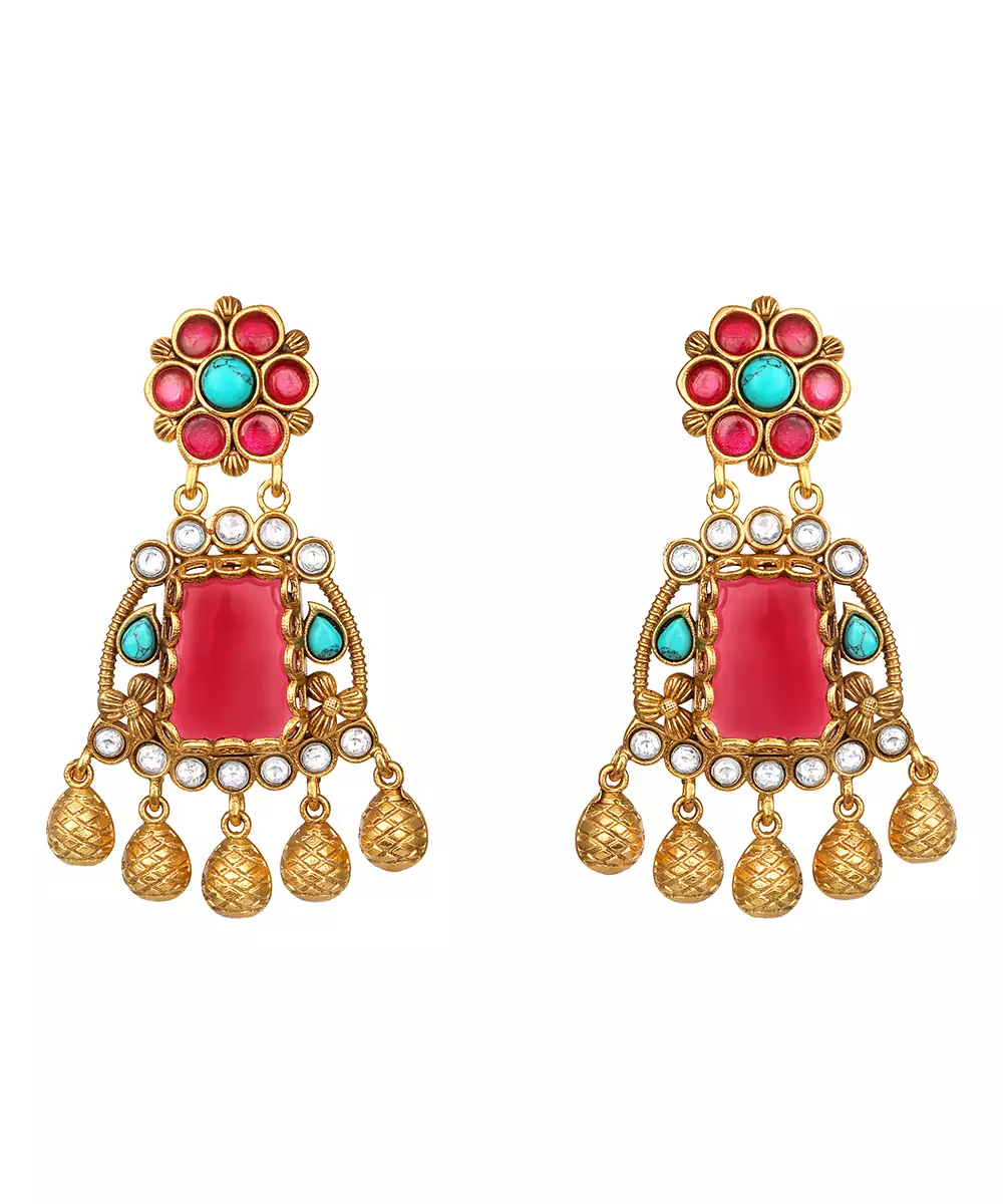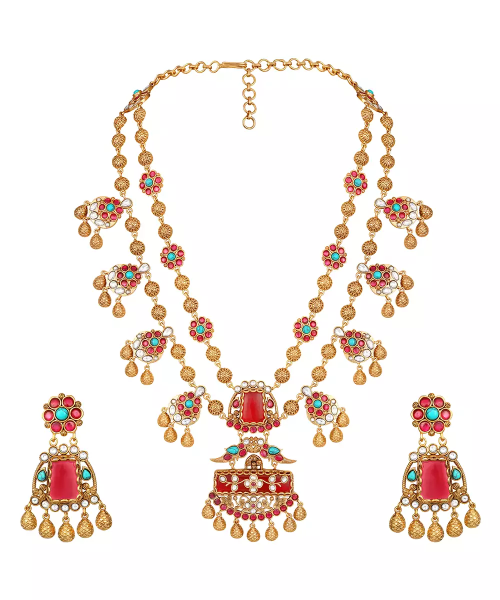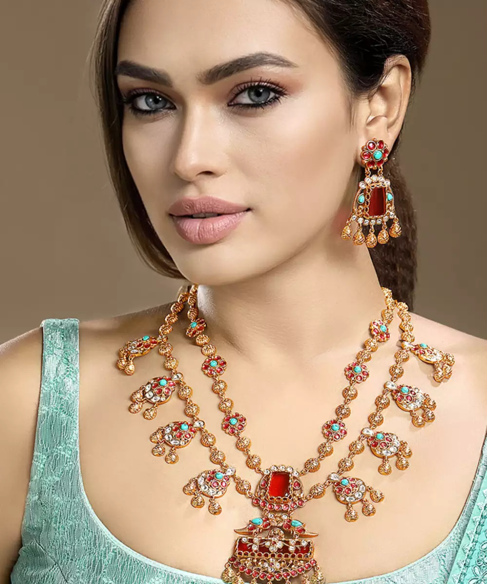 Elevate Your Elegance With This Gold Plated Kundan Multicolor Stones Necklace Set. Designed With Intricate Craftsmanship, It Features Radiant Multicolor Stones Set In Traditional Kundan Style. Perfect For Weddings, Festive Occasions, Or Special Celebrations, This Timeless Set Adds Regal Charm And Graceful Sophistication To Any Ethnic Ensemble.